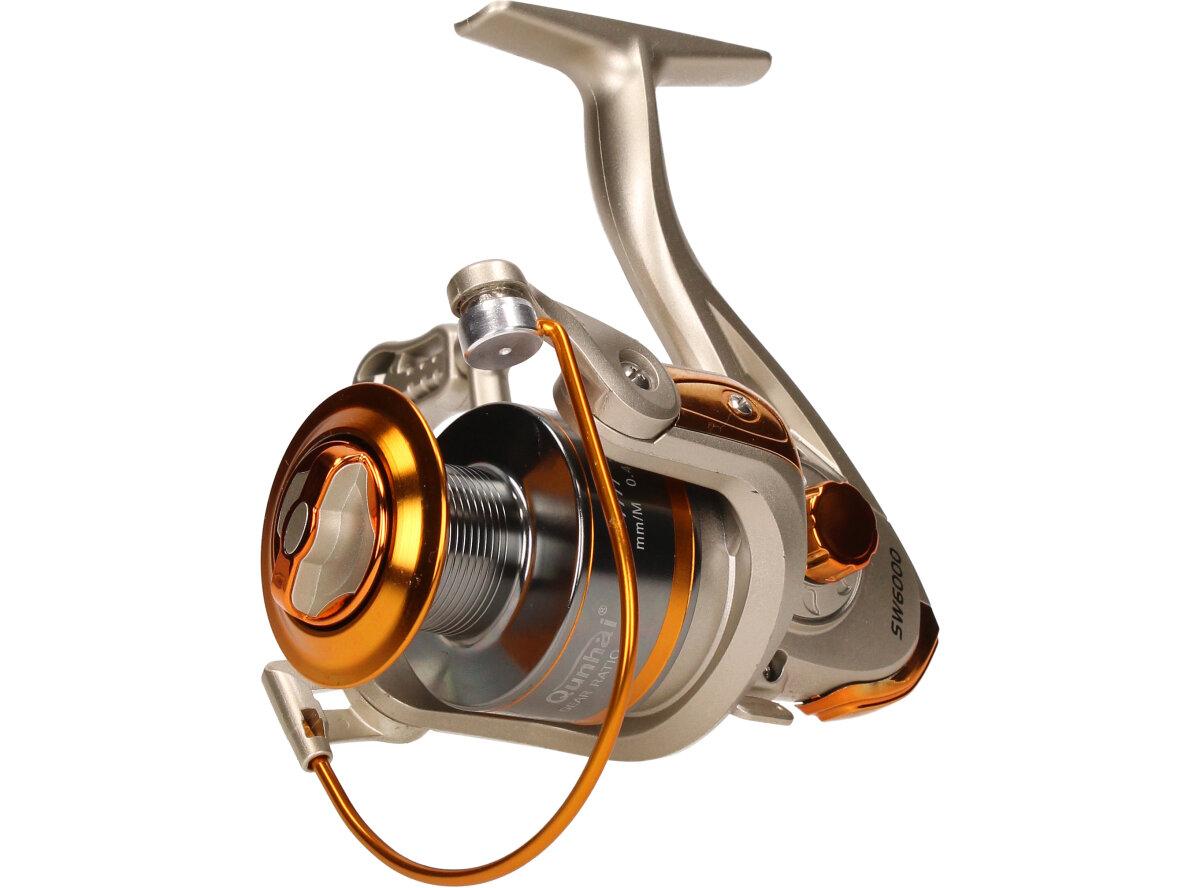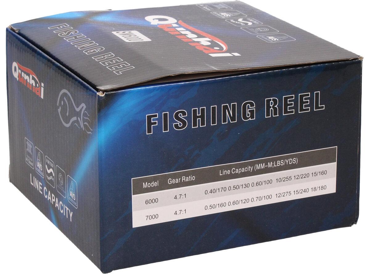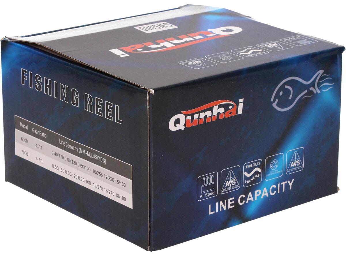 Rybářský naviják Qunhai SW6000 Je nedílnou součástí výbavy pro každý rybářský prut. Naviják s kvalitní mechanikou. Rybářský naviják obsahuje: AVS Anti vibrační systém, Zjednodušenou a praktickou manipulaci, vynikající oscilační systém, mosazné ozubené kolo, převodový poměr 5:1, Vyvážené zařízení, jemnou zadní brzdu, nastavitelnou kličku. Velká výhoda nastavitelné kličky je, že si naviják může každý přizpůsobit podle sebe buď na levou stranu a nebo na pravou stranu. Tudíž naviják mohou obsluhovat praváci i leváci.