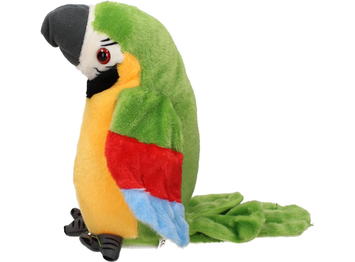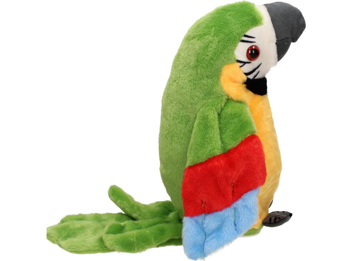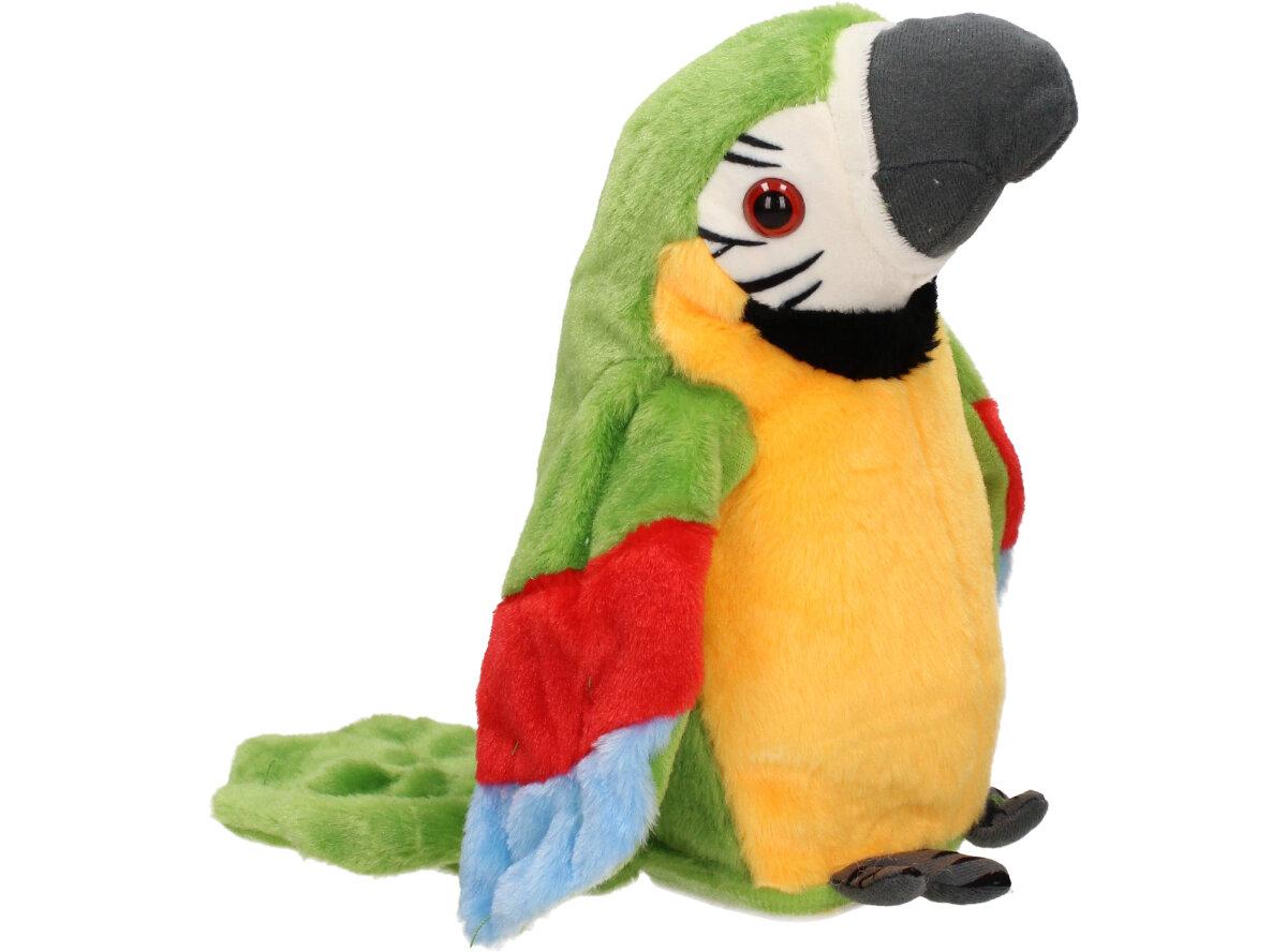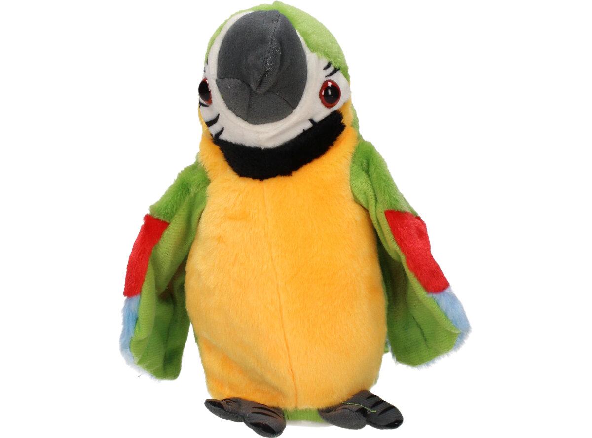 S tímto mluvícím papouškem, se bude bavit celá rodina. Stačí na papouška promluvit a on vzápětí zopakuje přesně to, co jste mu řekli. Přikyvuje hlavou nahoru a mává křídly, zatímco opakuje vaše slova. Svým veselým hláskem rozesměje i toho největšího pesimistu. Tato hračka je vyrobena z kvalitního antialergického plyše a napájena 3 AAA bateriemi (není součástí).