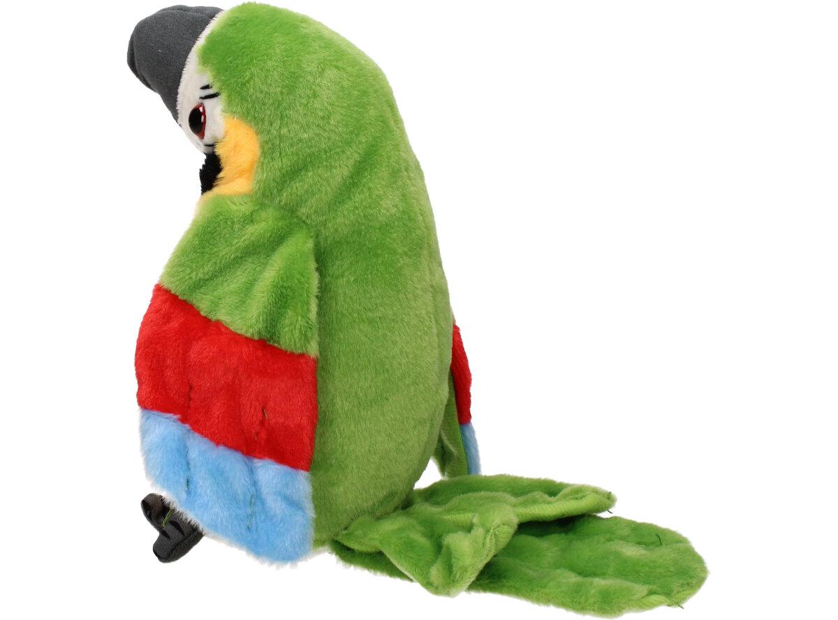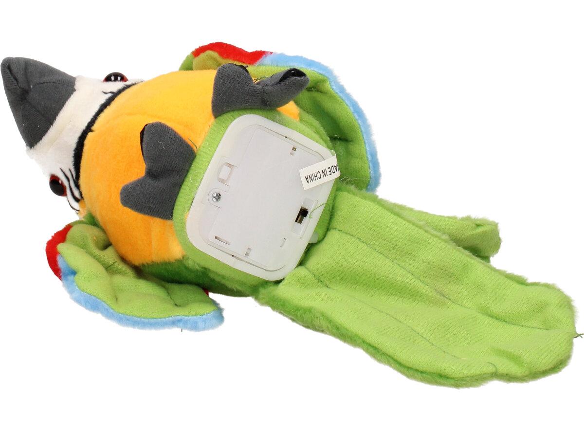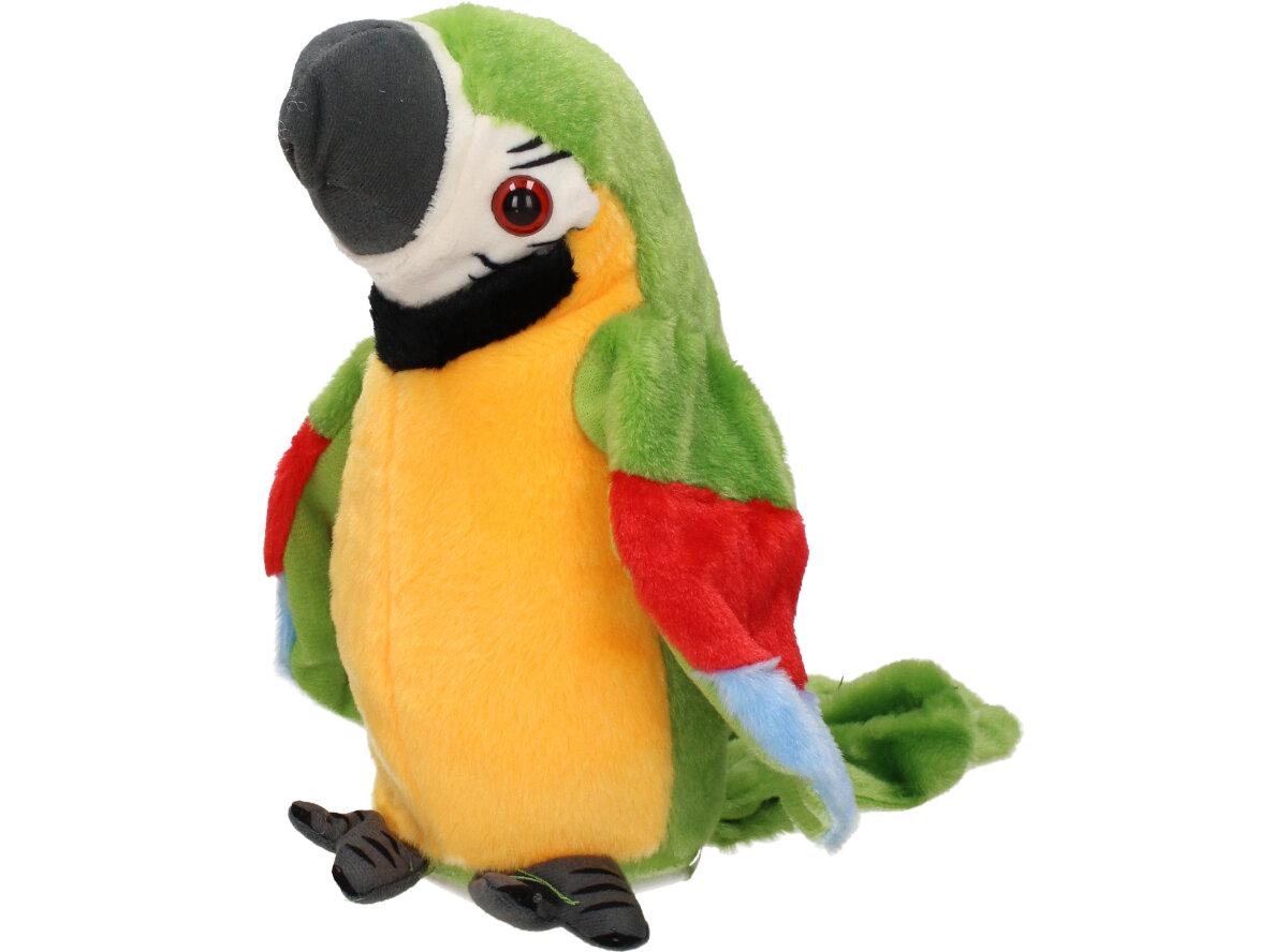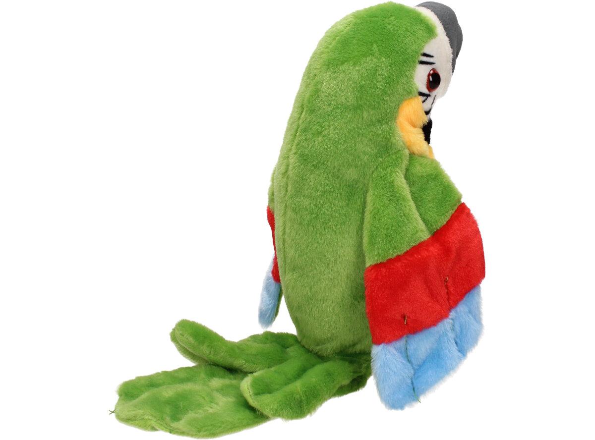 S tímto mluvícím papouškem, se bude bavit celá rodina. Stačí na papouška promluvit a on vzápětí zopakuje přesně to, co jste mu řekli. Přikyvuje hlavou nahoru a mává křídly, zatímco opakuje vaše slova. Svým veselým hláskem rozesměje i toho největšího pesimistu. Tato hračka je vyrobena z kvalitního antialergického plyše a napájena 3 AAA bateriemi (není součástí).