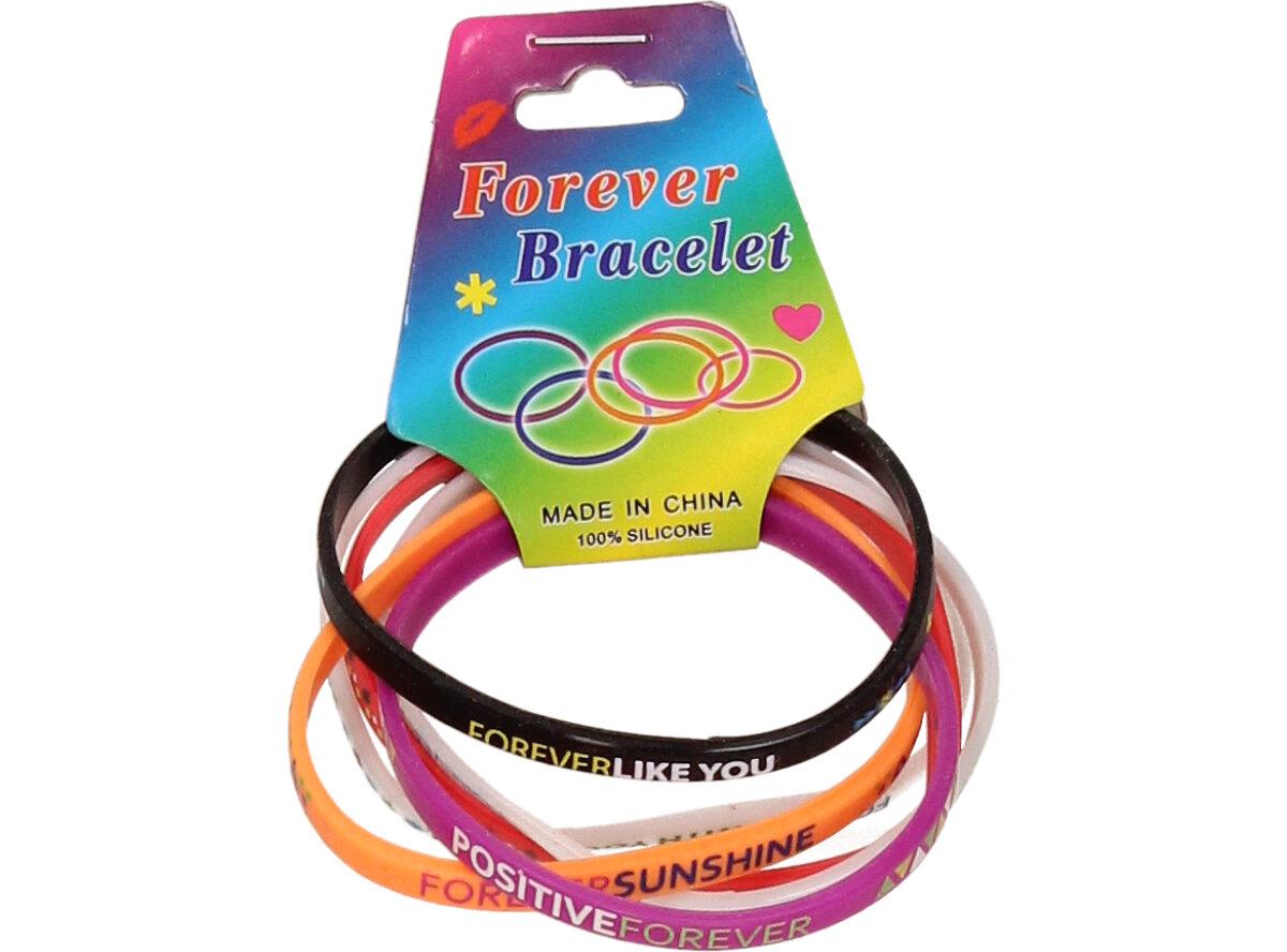 V sadě náramků Forever Bracelet 6 kusů naleznete barevné náramky vyrobené ze silikonu, každý náramek je pro jinou vlastnost.