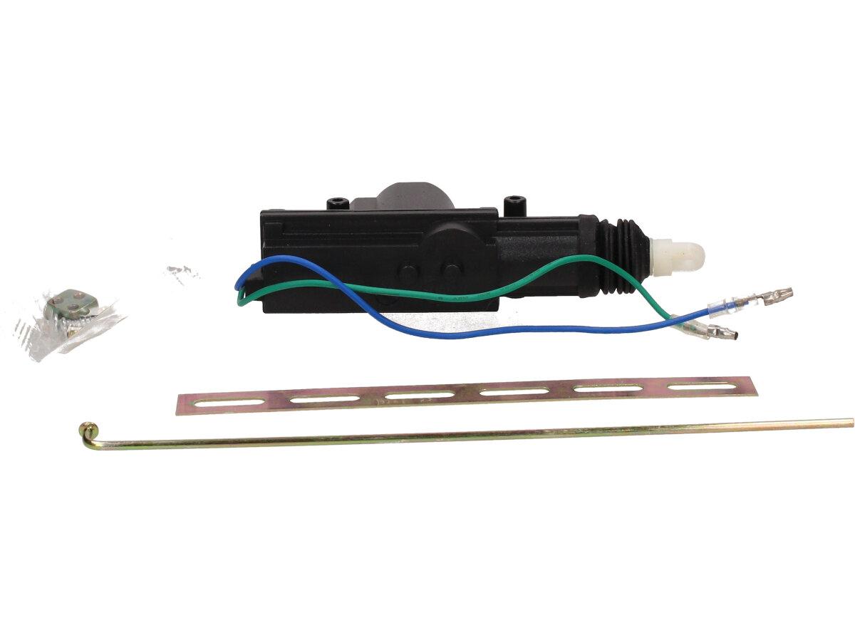 Tento motor dveřního zámku je dodáván s uzamykací tyčí, montážní tyčí a všemi šrouby/upevněními, abyste mohli provést instalaci sami! Motor lze přidat do jakýchkoli dveří a propojit s autoalarmem, systémem dálkového startování nebo systémem bezklíčového vstupu. Lze použít k mnoha účelům, jeho hlavní konstrukční funkcí je přeměnit ruční dveřní zámek na elektricky ovládaný. Motor má dvě připojení, která jednoduše pohánějí motor (zelený a modrý), pouhým připojením modrého a zeleného vodiče (12V pulzní pro zámek, 12v pulzní pro odemknutí). Zdvih pohonu je cca. 22 mm. Střed otvoru pro (dodané) montážní šrouby