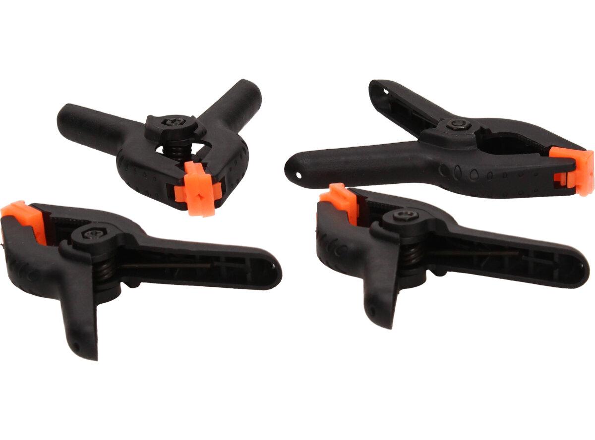 Svorka plastová sada 4 kůsy. Praktická sada 4 kusů plastových svorek o délce 9cm, se silným, pevným stiskem bez poškození předmětu.