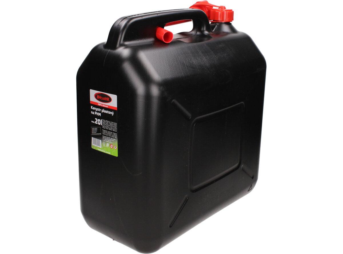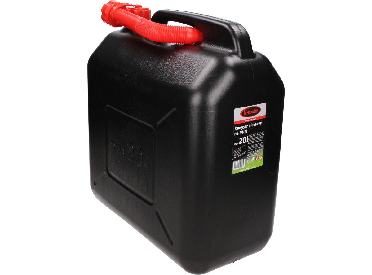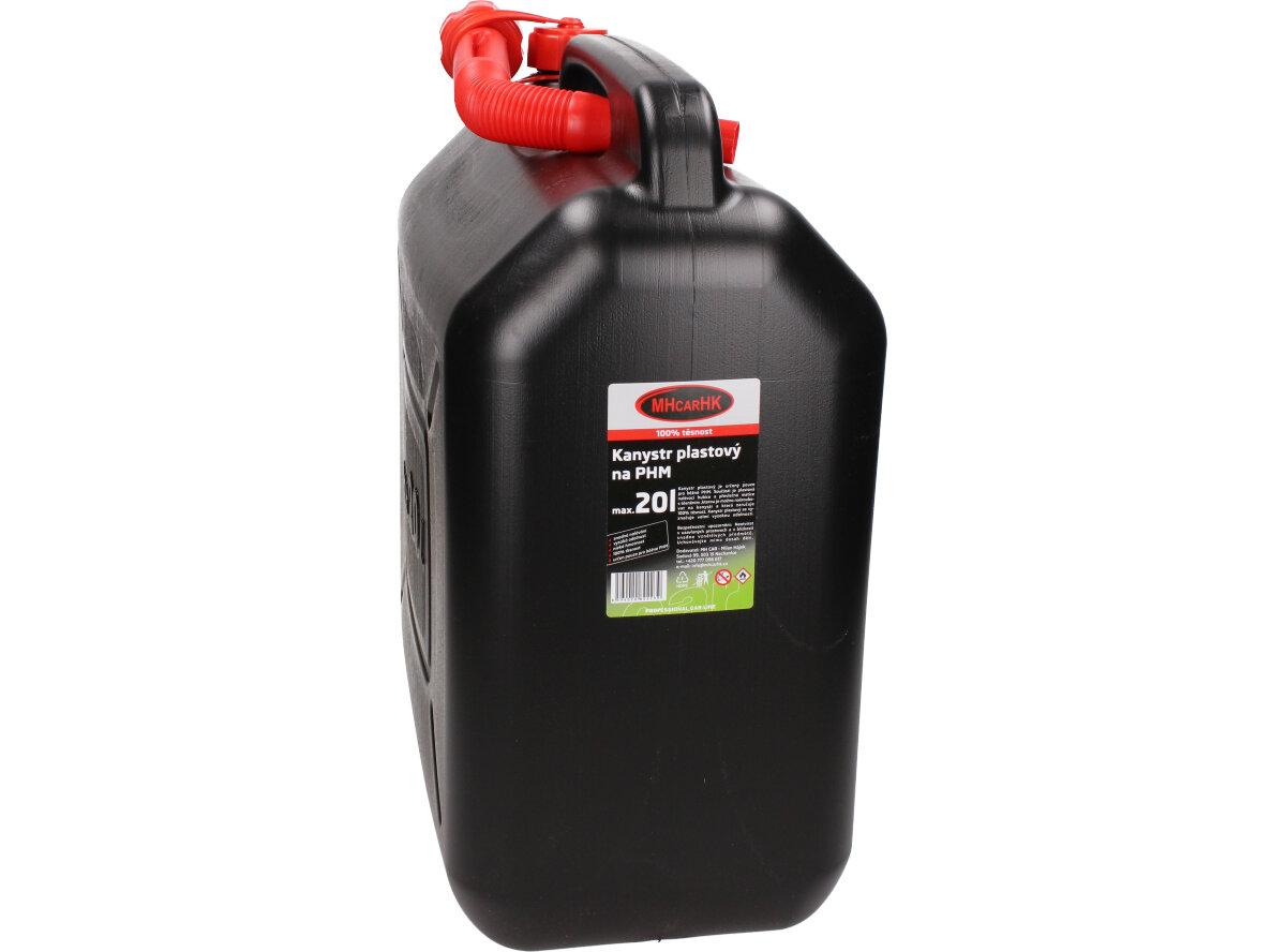 Plastový kanystr 20L MHcarHK s nálevkou a převlečnou hadicí je určený pouze pro běžné pohonné hmoty jako je nafta, benzín, ethanol. Součástí je plastová nalévací hubice a převlečná matice s těsněním, kterou je možné našroubovat na kanystr a která zaručuje 100% těsnost. Kanystr má velmi vysokou odolnost.