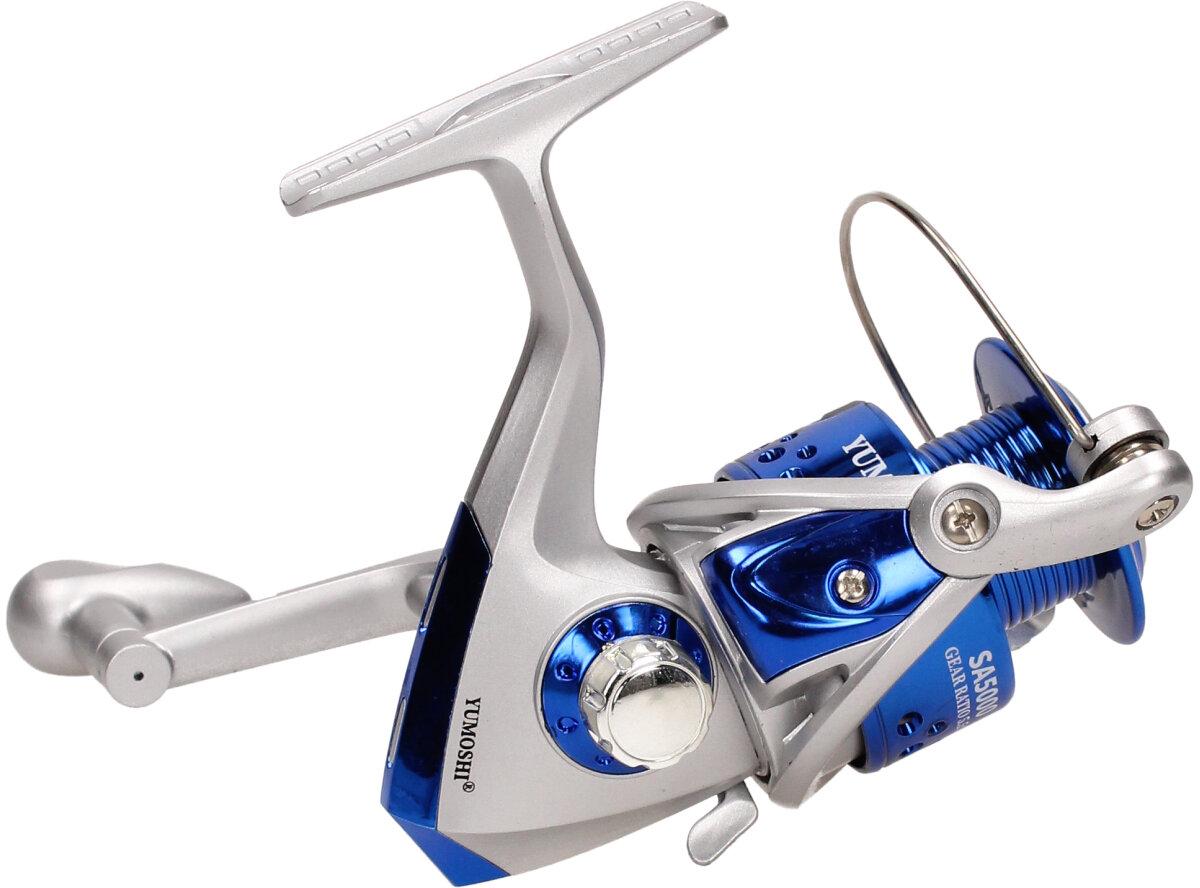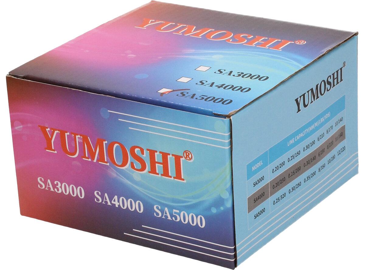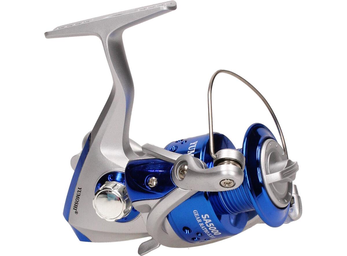 Rybářský naviják YUMOSHI SA5000 Je nedílnou součástí výbavy pro každý rybářský prut. Naviják s kvalitní mechanikou. Rybářský naviják obsahuje: AVS Anti vibrační systém, Zjednodušenou a praktickou manipulaci, vynikající oscilační systém, mosazné ozubené kolo, převodový poměr 5:1, Vyvážené zařízení, jemnou zadní brzdu, nastavitelnou kličku. Velká výhoda nastavitelné kličky je, že si naviják může každý přizpůsobit podle sebe buď na levou stranu a nebo na pravou stranu. Tudíž naviják mohou obsluhovat praváci i leváci.