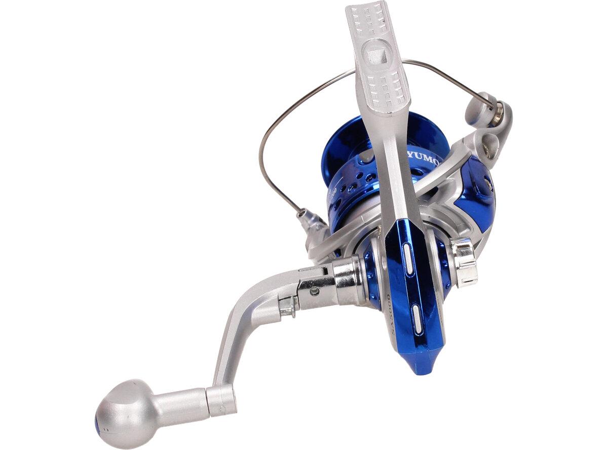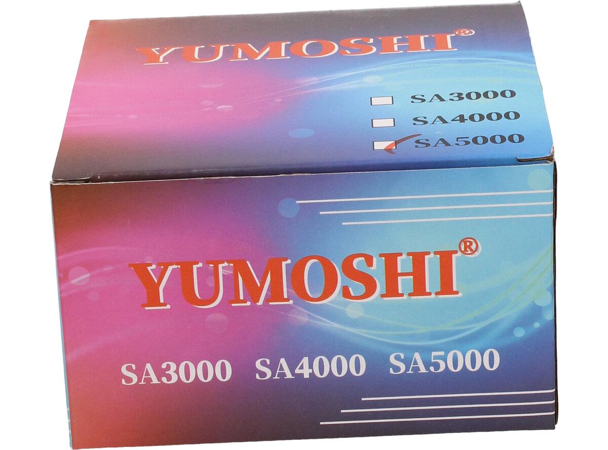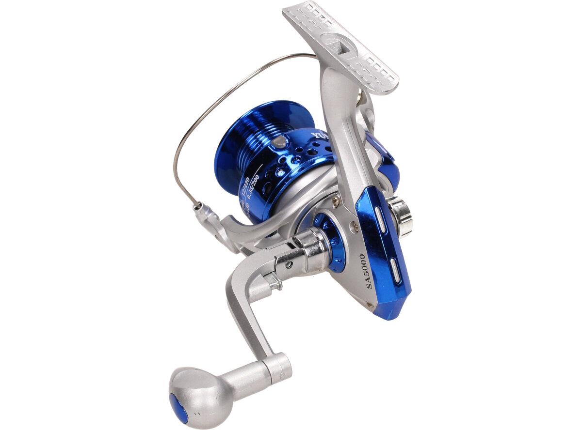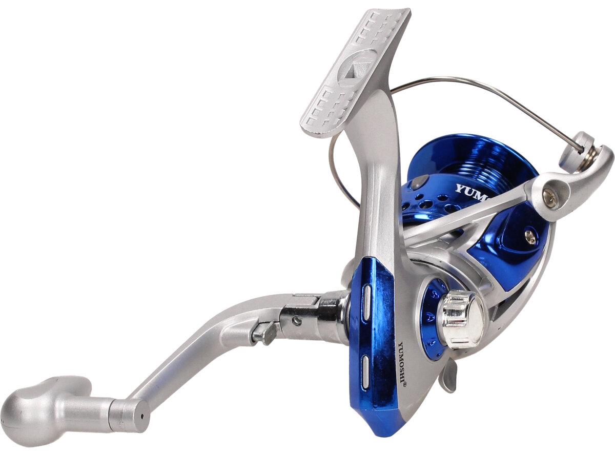Rybářský naviják YUMOSHI SA5000 Je nedílnou součástí výbavy pro každý rybářský prut. Naviják s kvalitní mechanikou. Rybářský naviják obsahuje: AVS Anti vibrační systém, Zjednodušenou a praktickou manipulaci, vynikající oscilační systém, mosazné ozubené kolo, převodový poměr 5:1, Vyvážené zařízení, jemnou zadní brzdu, nastavitelnou kličku. Velká výhoda nastavitelné kličky je, že si naviják může každý přizpůsobit podle sebe buď na levou stranu a nebo na pravou stranu. Tudíž naviják mohou obsluhovat praváci i leváci.