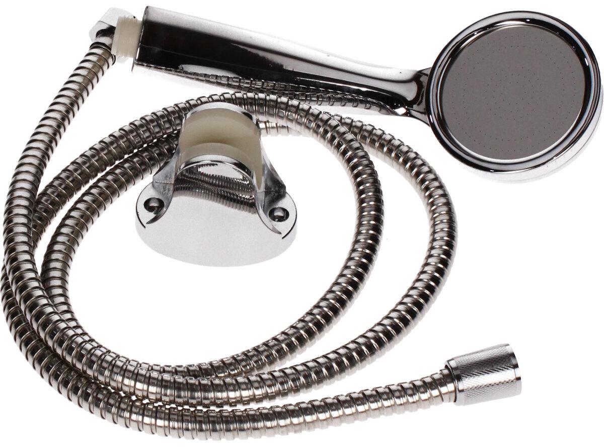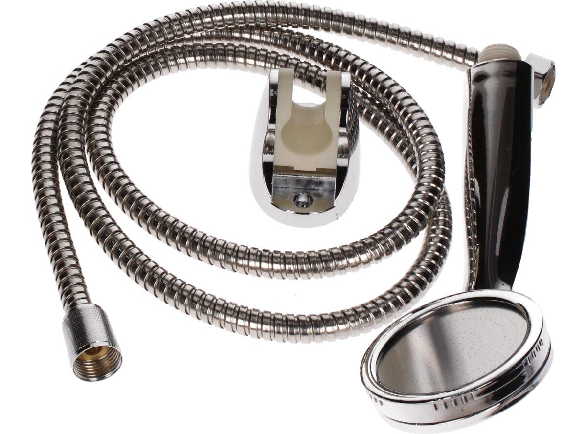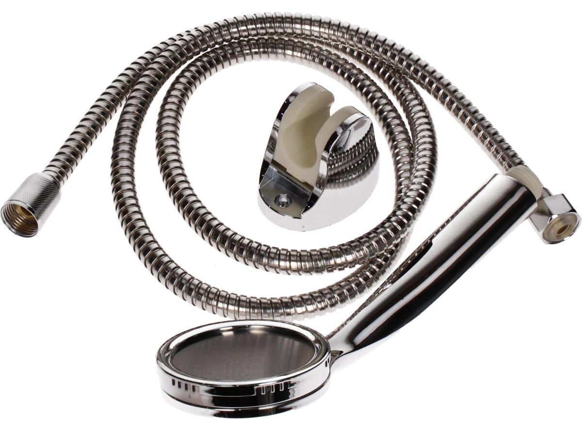 Sprchová sada 3ks Chromovaná je sada, která se obsahuje sprcovou hadici o délce 1,5m, sprchovou hlavici a držák na stěnu