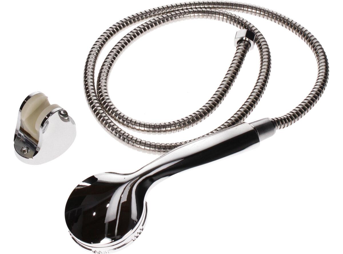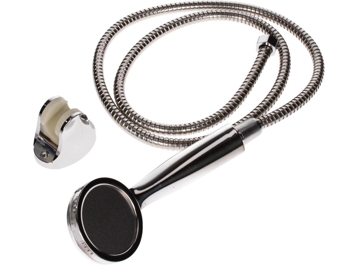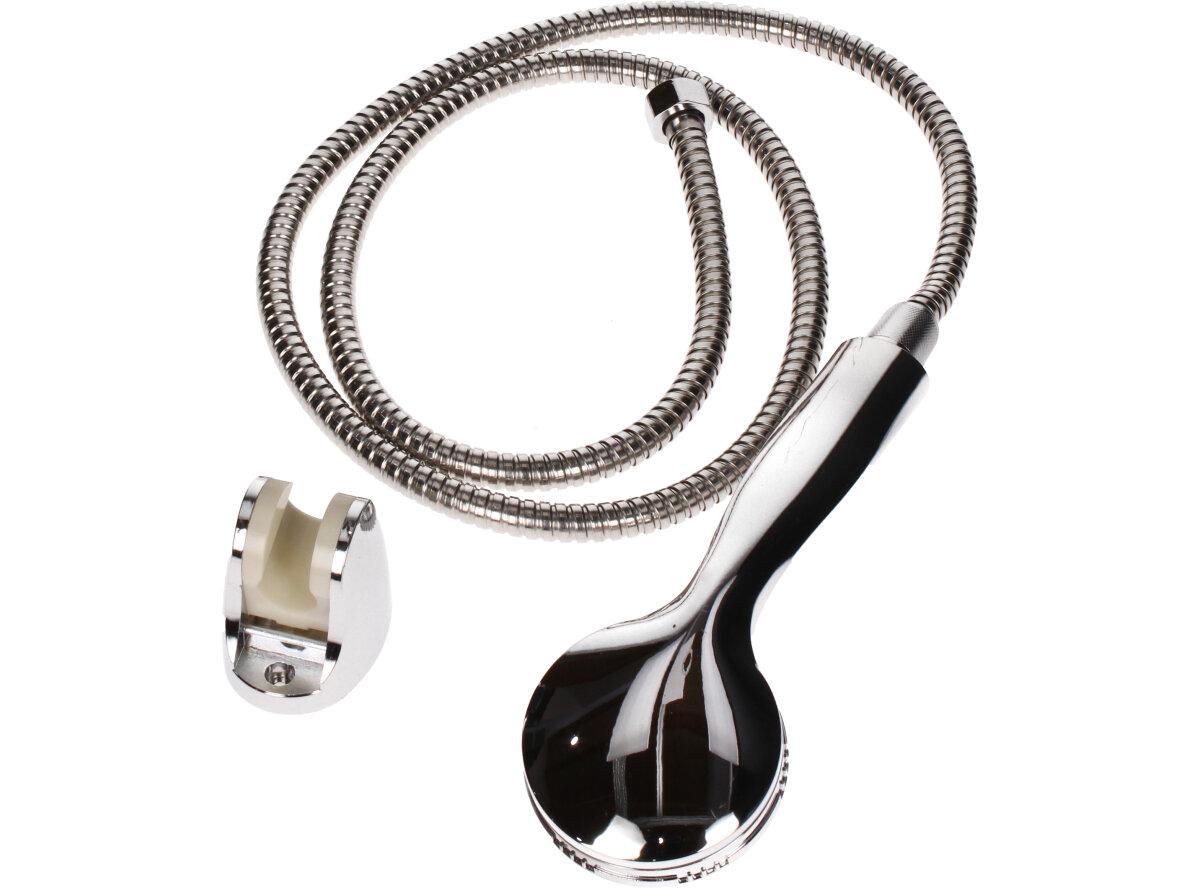 Sprchová sada 3ks Chromovaná je sada, která se obsahuje sprcovou hadici o délce 1,5m, sprchovou hlavici a držák na stěnu
