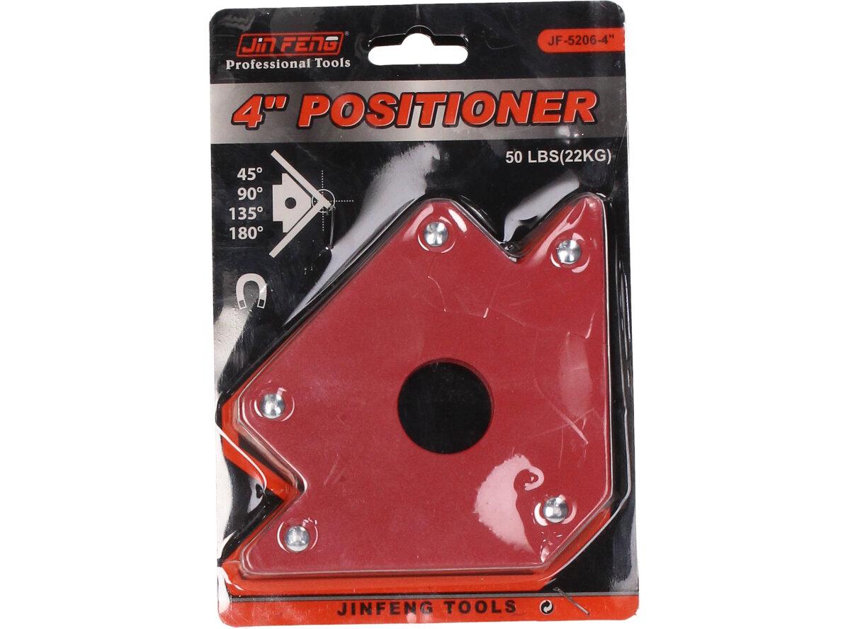 Úhlový magnet pro svařování 22 kg 4" se stane užitečným nástrojem při svařování železa, niklu a kobaltu. Silné magnety nahradí druhou osobu, která by vám přidržovala svařované části. Maximální nosnost každého magnetu je 22 kg. Můžete svařovat jakýkoliv magnetický kov pod úhlem 45°, 90° nebo 135°. Otvor v magnetu umožňuje jednoduché odstranění od opracováváných kovů.