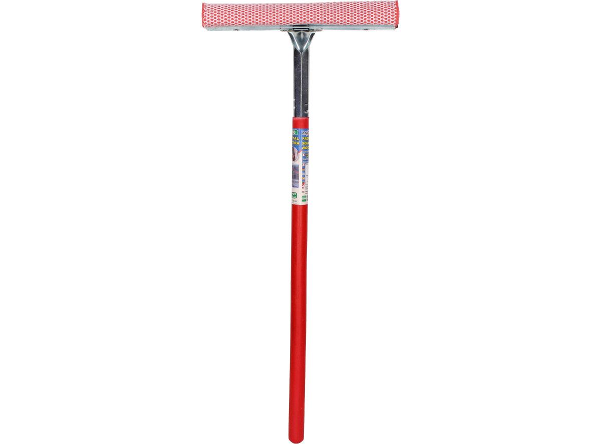 Z jedné strany molitan, díky kterému umejete okno a z druhé strany stírací guma. Velikost stěrky i s násadou je 60cm, velikost stírací a mycí plochy je 25cm.