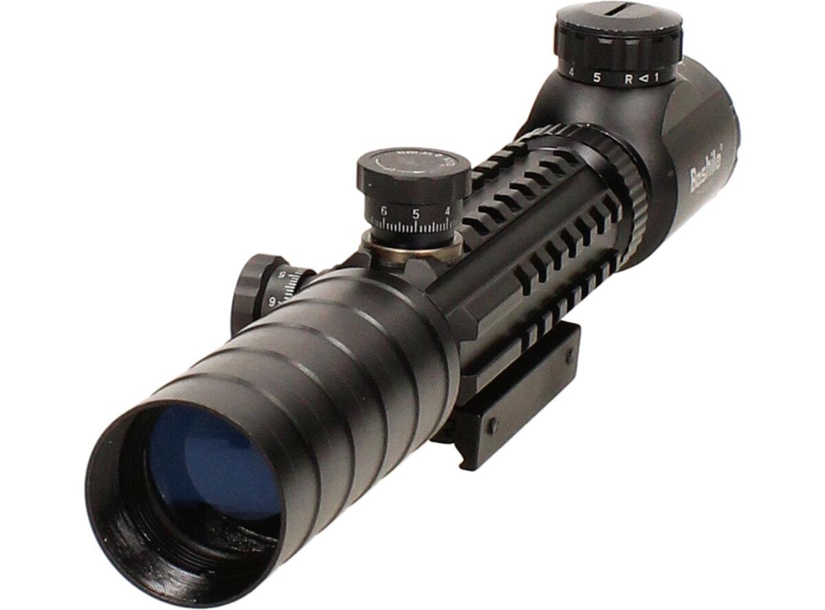 Puškohled Bosile C3-9x32EG s montážní jednotkou na 11mm lištu . Záměrná osnova je v druhé fokální rovině má dvojí podsvícení červené a zelené, široké zorné pole, plně antireflexní, mlze a vodě odolný, kryt optiky. Délka 300 mm, o 42,30 mm, váha 0.5 kg (iz montáží). Kvalitní puškohled vhodný na všechny druhy vzduchových, airsoftových ale i loveckých zbraní. Dodávané s ochrannými kryty na sklíčka. Po upevnění puškohledu na zbraň je možné, že zaměřování a střelba nebude přesná. Pokud tak bude, třeba si puškohled nastavit pomocí dvou nastavitelných koleček. K puškohledu je dodáván i imbusový klíč na upevnění.
