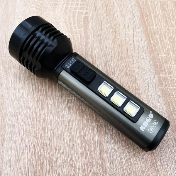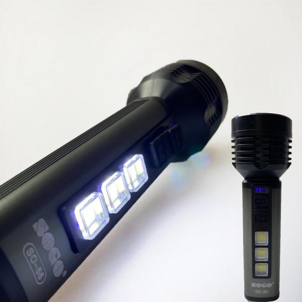 USB nabíjecí baterka Sogo SO-66 je baterka, která vydrží dlouho nabitá a má dvě svítilny, boční a přední