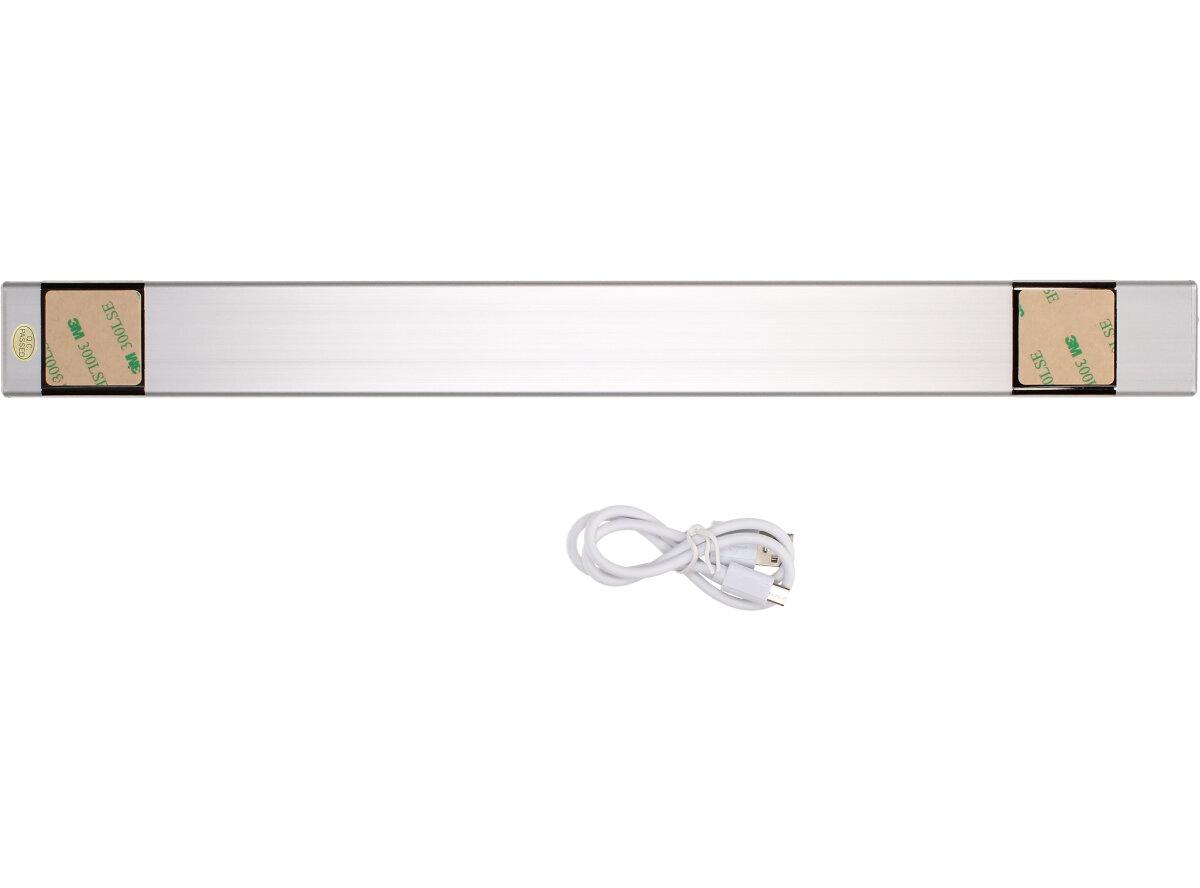 Jedná se o designové interiérové nabíjecí světlo s integrovaným akumulátorem, pohybovým čidlem a magnetickou základnou. Jeho tělo je tenké 9,5mm a dlouhé 40 cm, již při vzetí do ruky je znát kvalita a robusnost provedení světla. Krytí IP 20. Vhodné do skříně, na schody, Do kuchyně, Do dětského pokoje, Do koupelny, Do ložnice, Do obývacího pokoje, Do chodby, Do pracovny, Do jídelny, Do sklepa, Do garáže, Na WC. Vstupní napětí 5V, USB kabel je součástí balení. Výhodou je funkce automatické zapínání a vypínání světla, díky tomuto sensoru se světlo samo zapne a vypne.