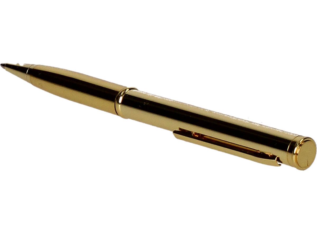 Kovová propiska 2v1 Zlatá je designová propiska včetně nožíku uvnitř, který se hodí na cestách, jako sebeobrana nebo na dopisy