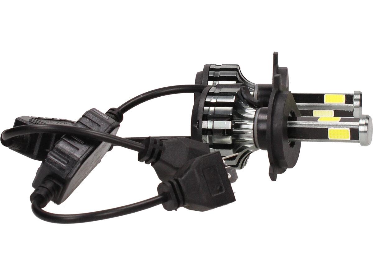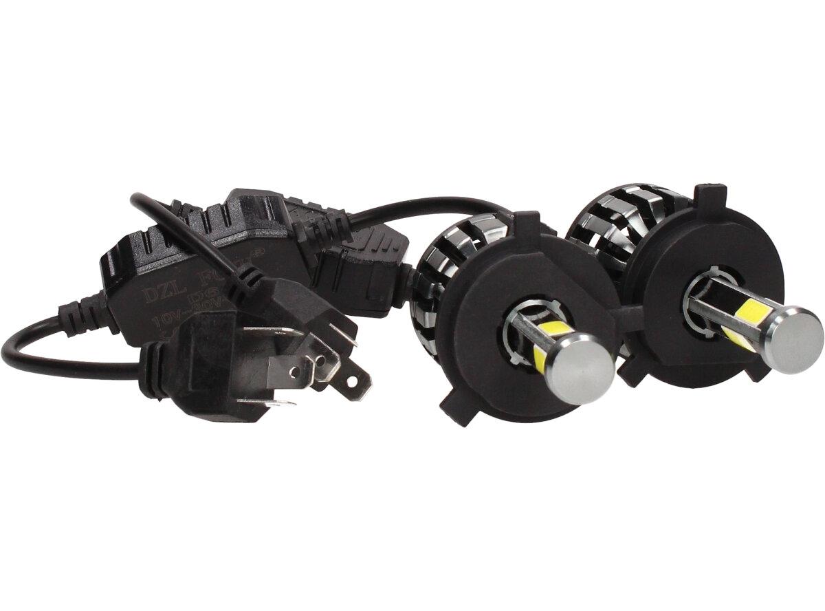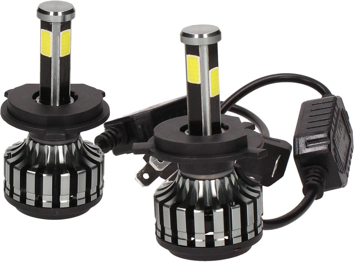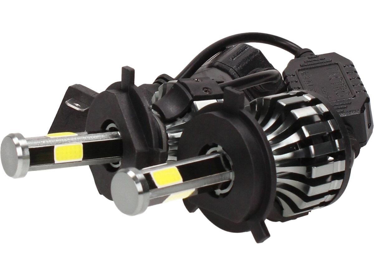 Velice odolná LED H4 D6 žárovka s barvou světla 6000K (studená bílá) sada 2 kusy do světlometu do auta na 12V, 24V jako náhrada za klasickou nevýkonou žárovku H4.