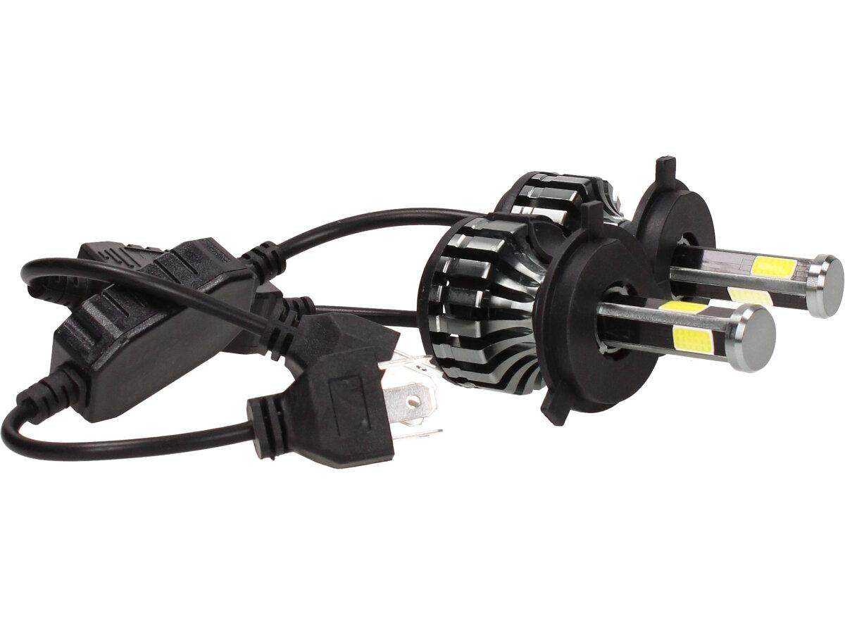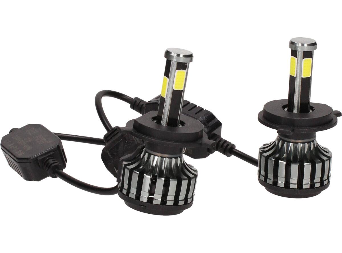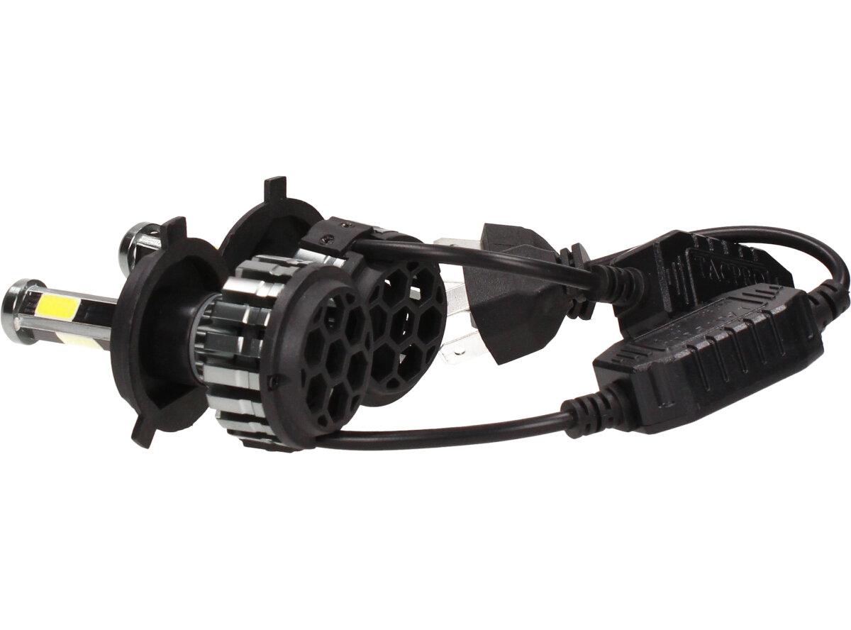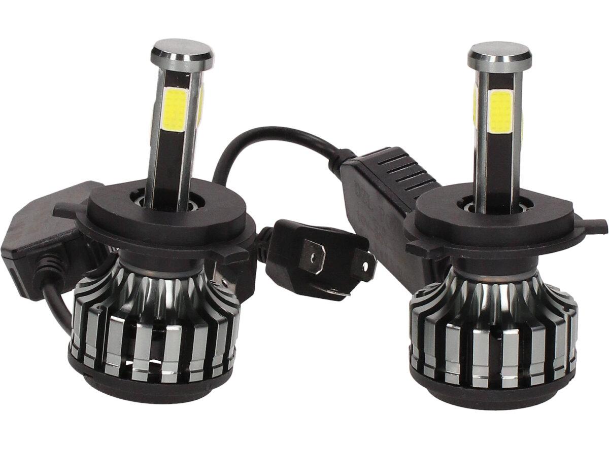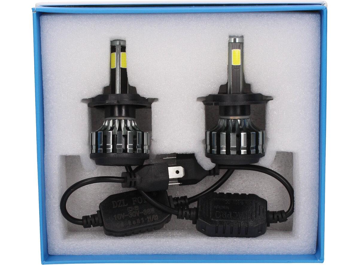 Velice odolná LED H4 D6 žárovka s barvou světla 6000K (studená bílá) sada 2 kusy do světlometu do auta na 12V, 24V jako náhrada za klasickou nevýkonou žárovku H4.