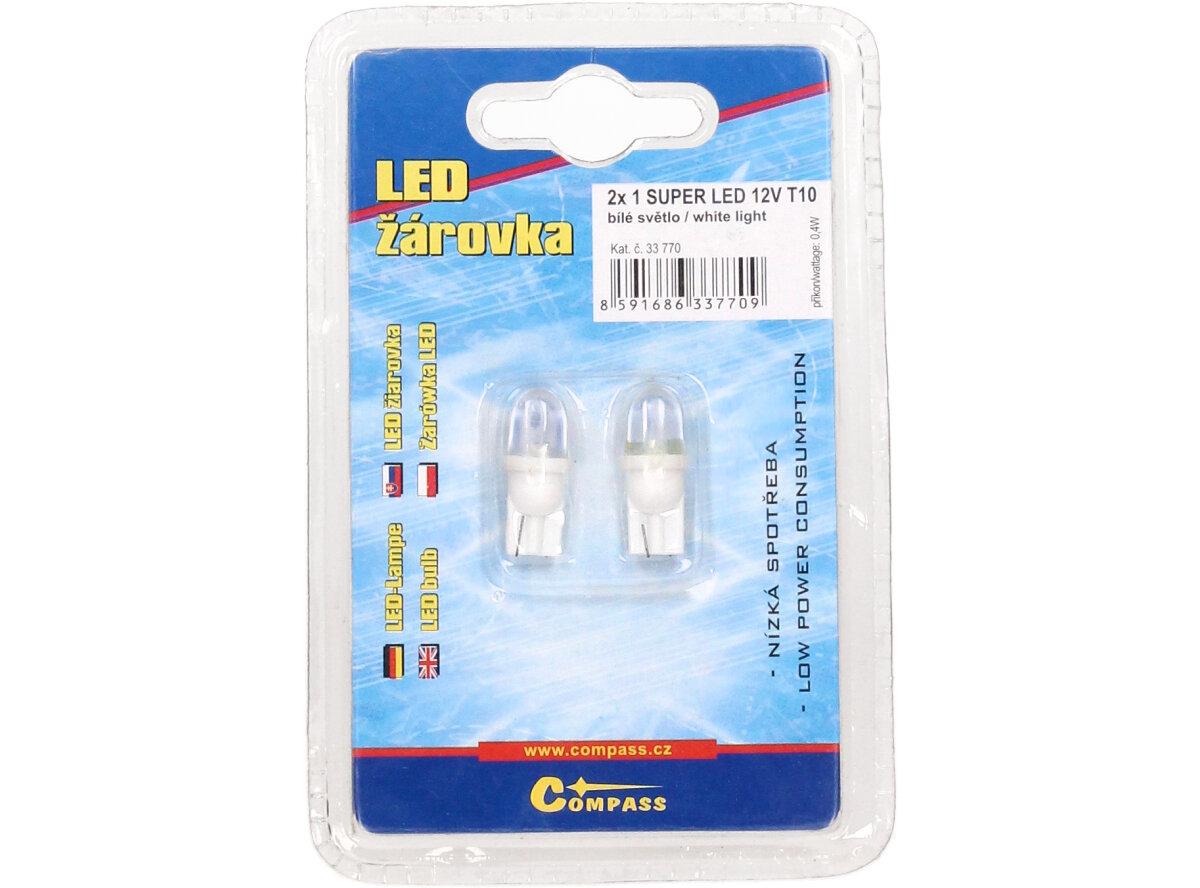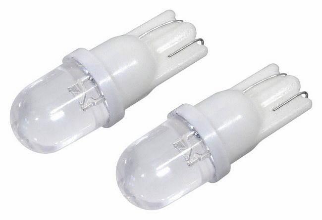 LED autožárovka T10 (patice W2.1x9.5d), výkon 0,29W, napětí 12 V, světelný tok 10lm, barevná teplota 5000K (neutrální bílá), životnost 30000h (1500000km), 2 ks v balení