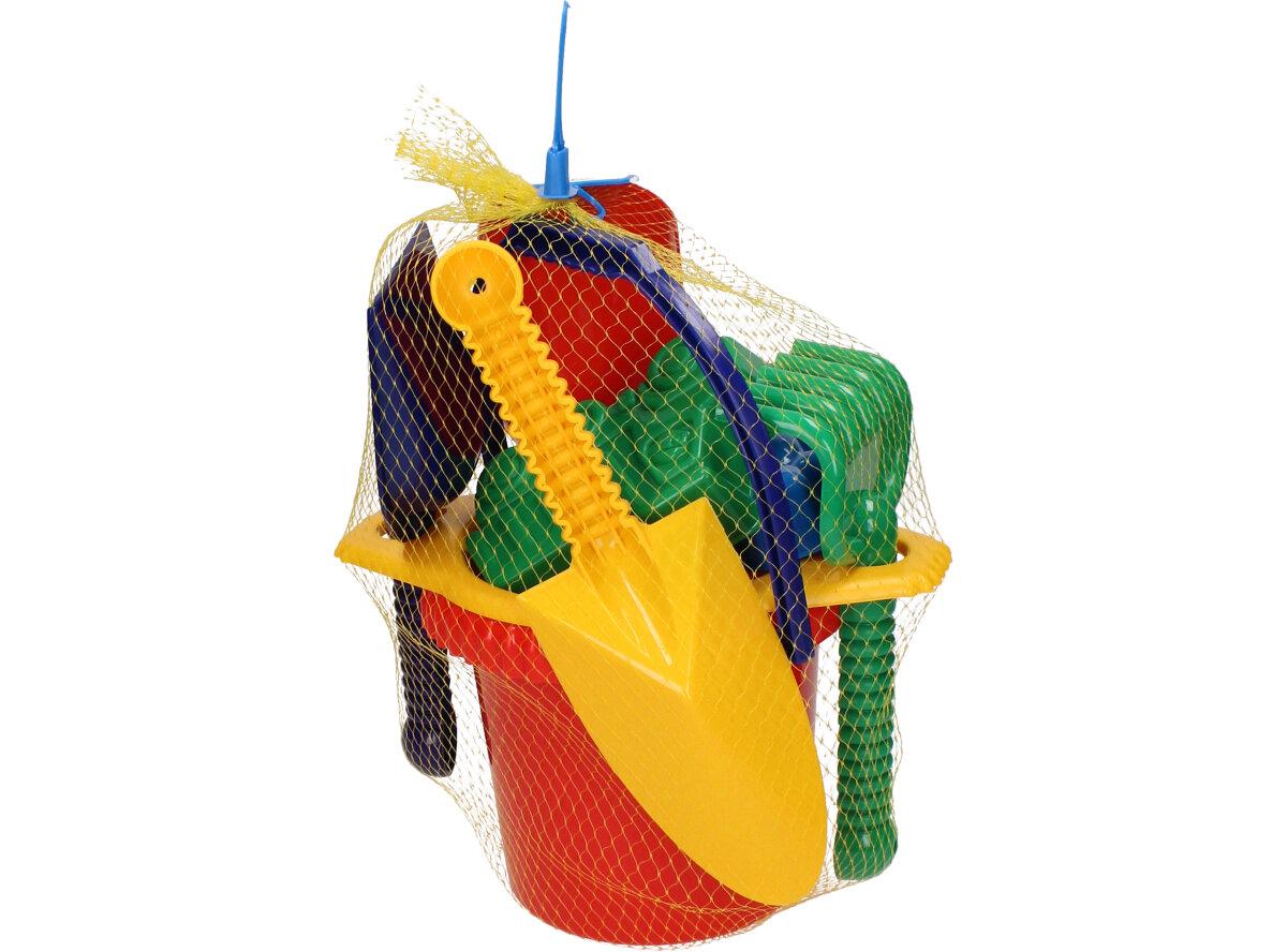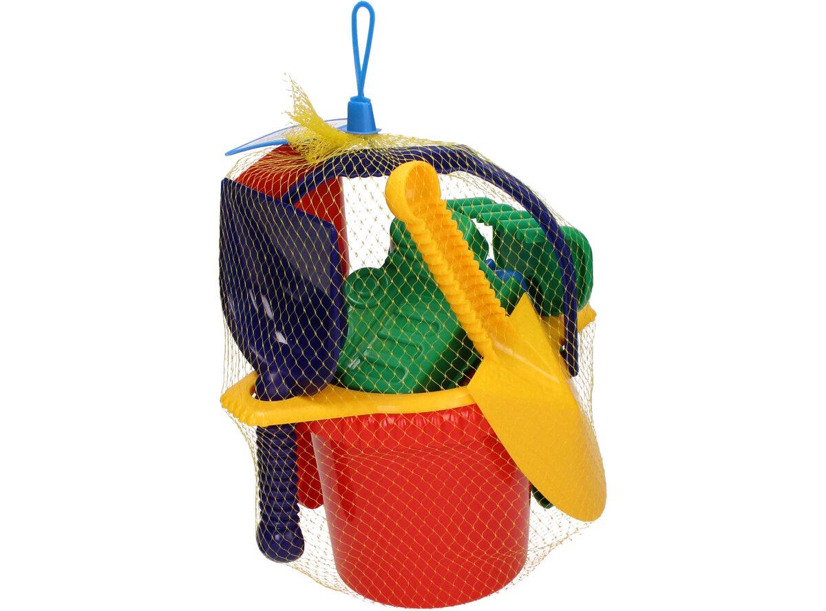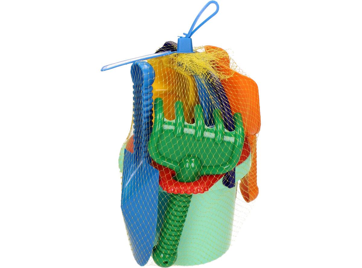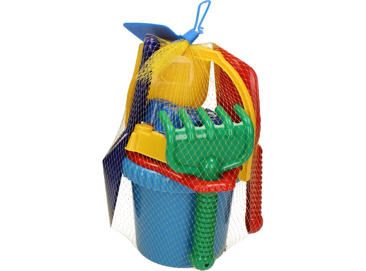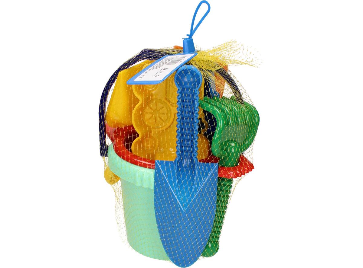 Souprava kyblík, sítko, lopatka, hrabicky, 2x bábovky, ŕýč, kupecká lopata, sada hraček na písek potěší všechny milovníky pískových hrátek. Děti v sadě naleznou kyblík, sítko, lopatka, hrabicky, 2x bábovky, ŕýč, kupecká lopata.