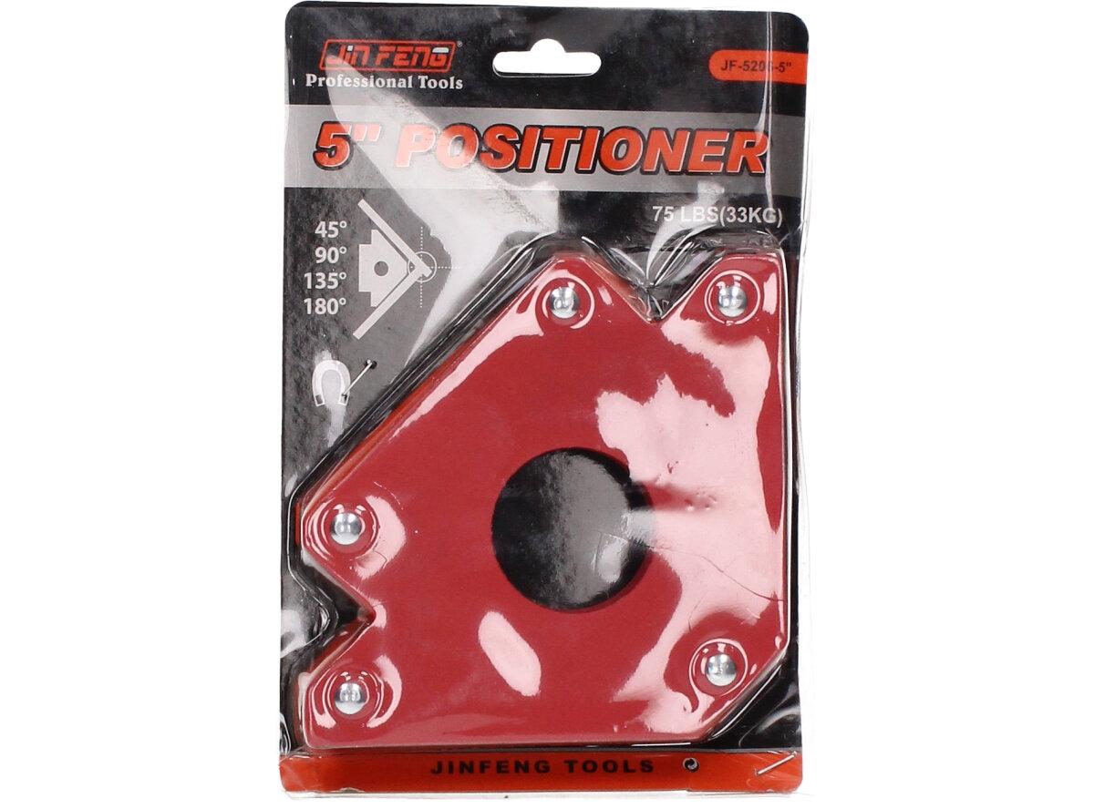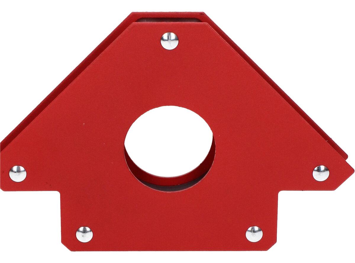 Úhlový magnet pro svařování 33 kg 5" se stane užitečným nástrojem při svařování železa, niklu a kobaltu. Silné magnety nahradí druhou osobu, která by vám přidržovala svařované části. Maximální nosnost každého magnetu je 33 kg. Můžete svařovat jakýkoliv magnetický kov pod úhlem 45°, 90° nebo 135°. Otvor v magnetu umožňuje jednoduché odstranění od opracováváných kovů.