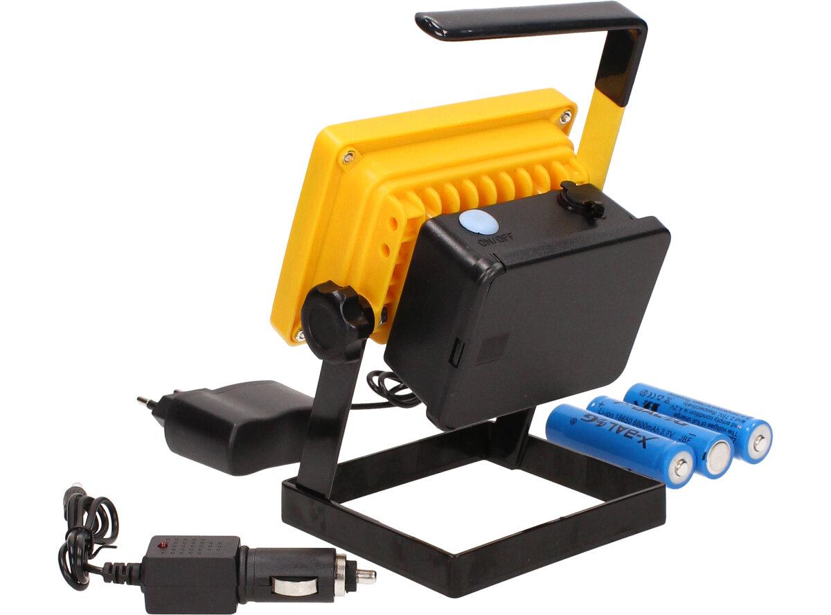 Přenosný LED reflektor můžete využít vždy, když potřebujete světlo a není nablízku el. zásuvka. Reflektor je vodotěsný, odolává prachu i nárazům při pádu. Jeho masivní nosná konstrukce odolává i těm nejnepříznivějším povětrnostním podmínkám: nepřevrátí ho ani vítr ani bouře. Jeho svítivost odpovídá síle 100W halogenu. Tento přenosný nabíjecí reflektor je ideální na stavby a staveniště, do autodílen, pro montéry a opraváře co jezdí do terénu apod. Je také perfektním pomocníkem pro rybáře, myslivce, motoristy nebo na kempování pod stanem.