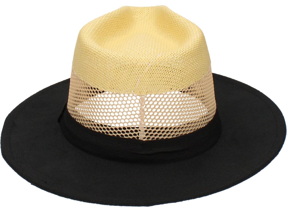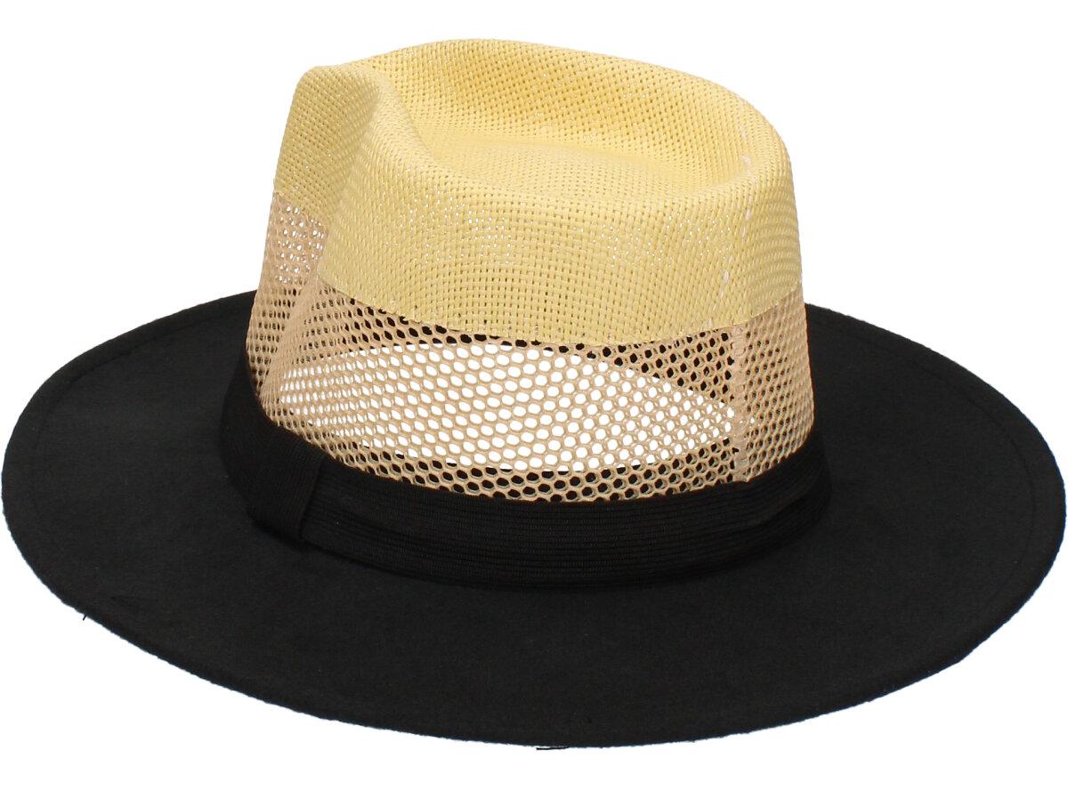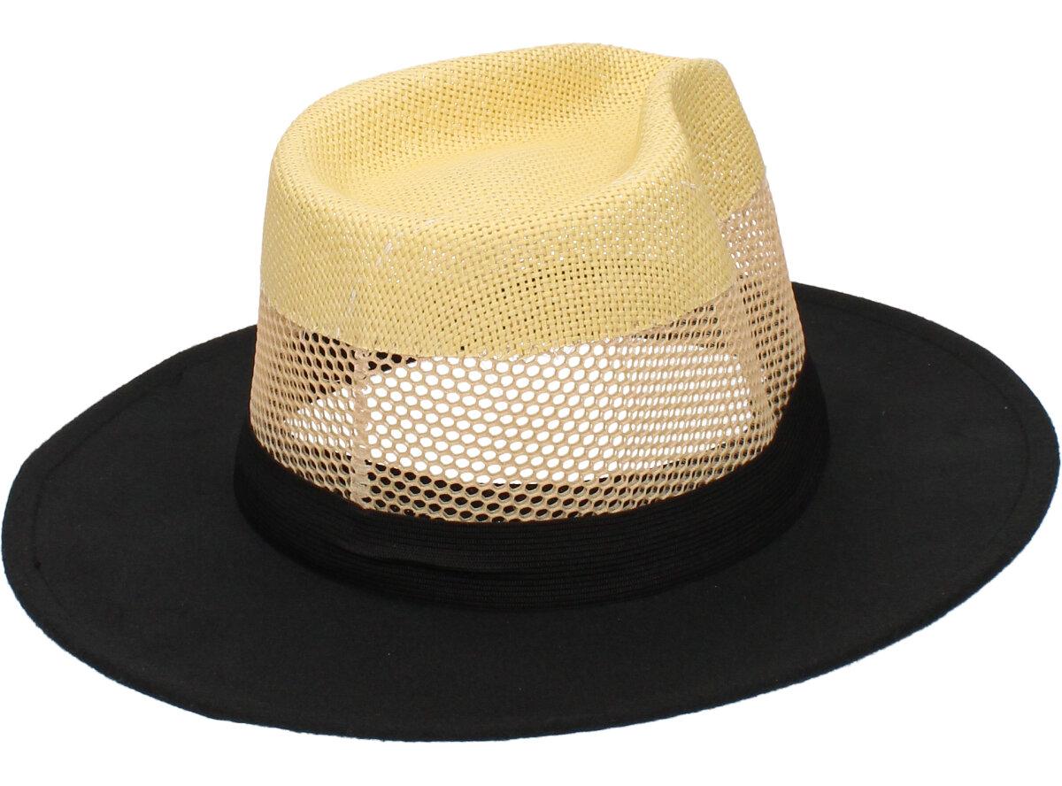 Černý letní klobouk se žlutou perforací a žlutým pruhem vel 57 je skvělým doplňkem pro dámy i pro pány. Tento klobouk je vhodný k jakémukoliv oblečení a je velmi praktický např. při horkých letních dnech, kdy vám chrání hlavu před úpalem a zabrání vysokému záření sluníčka do vašich očí. Klobouk je perforovaný, vzdušný. Klobouk je vyrobený s měkkého plastu.