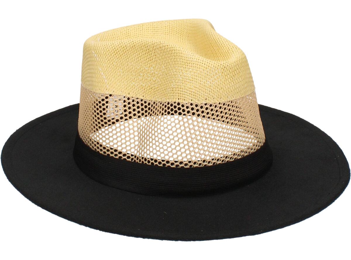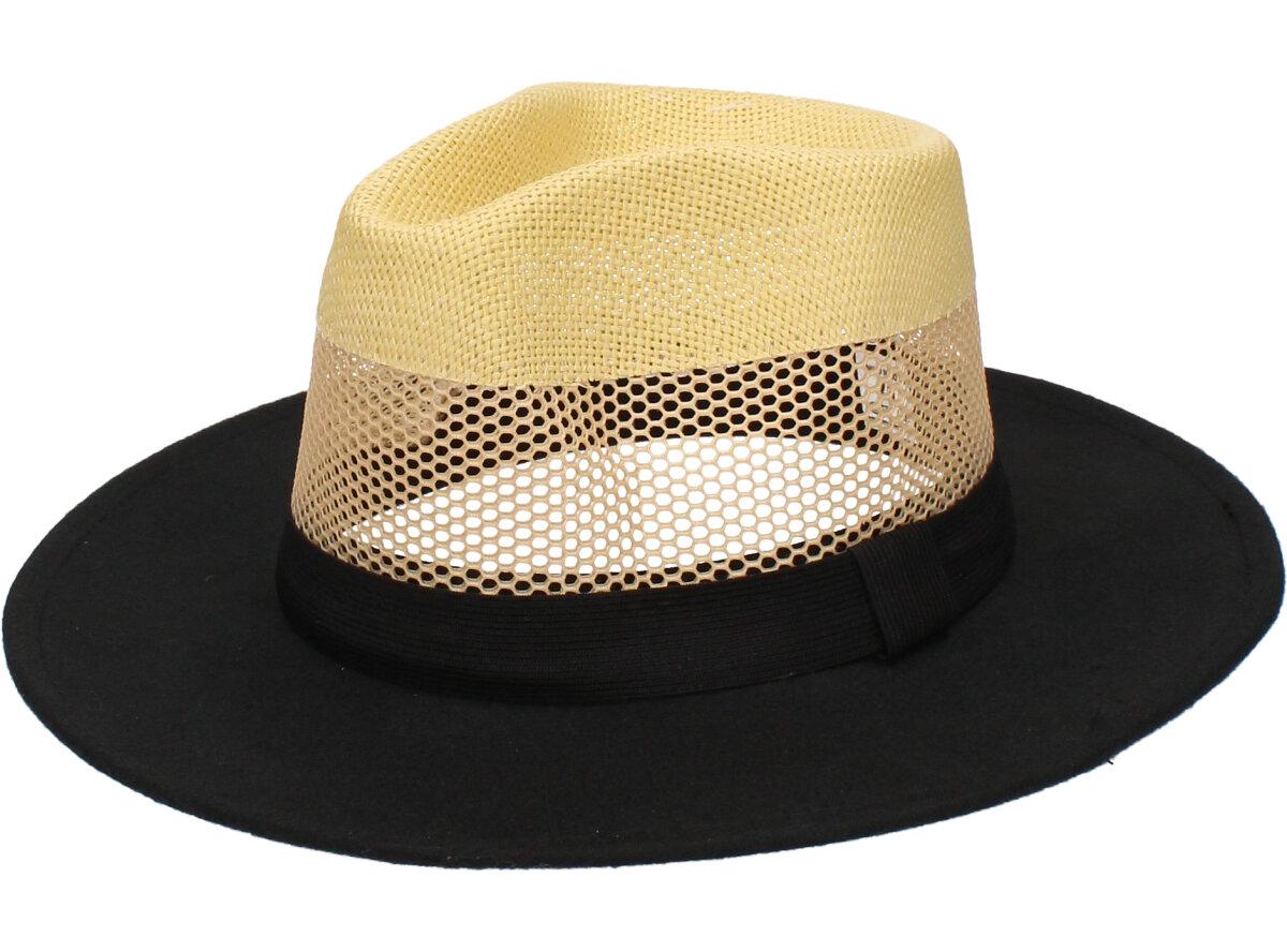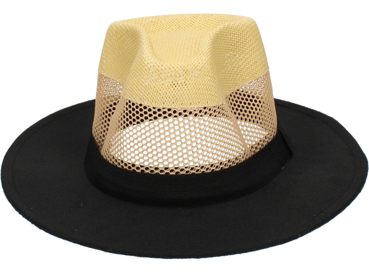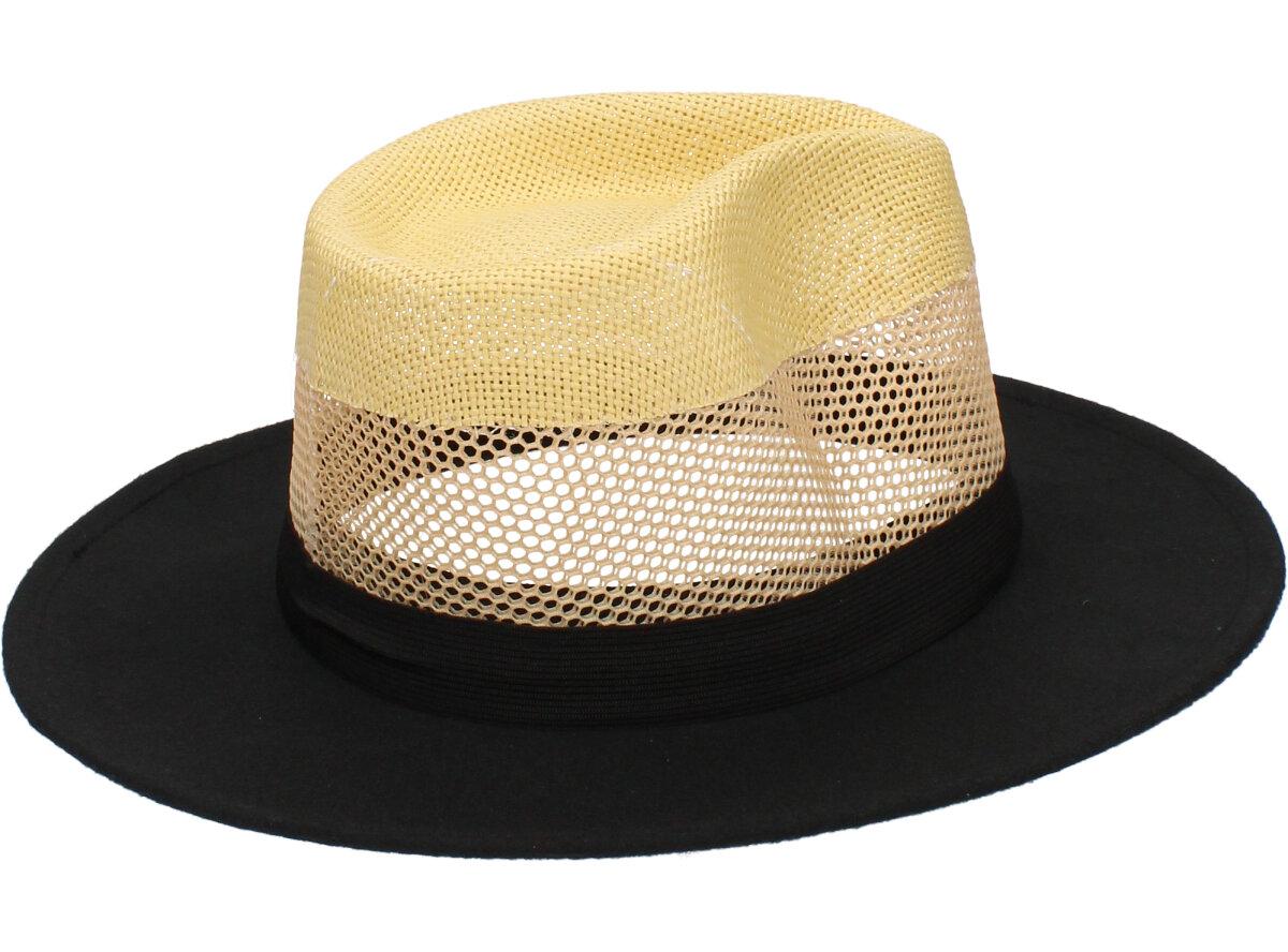 Černý letní klobouk se žlutou perforací a žlutým pruhem vel 57 je skvělým doplňkem pro dámy i pro pány. Tento klobouk je vhodný k jakémukoliv oblečení a je velmi praktický např. při horkých letních dnech, kdy vám chrání hlavu před úpalem a zabrání vysokému záření sluníčka do vašich očí. Klobouk je perforovaný, vzdušný. Klobouk je vyrobený s měkkého plastu.
