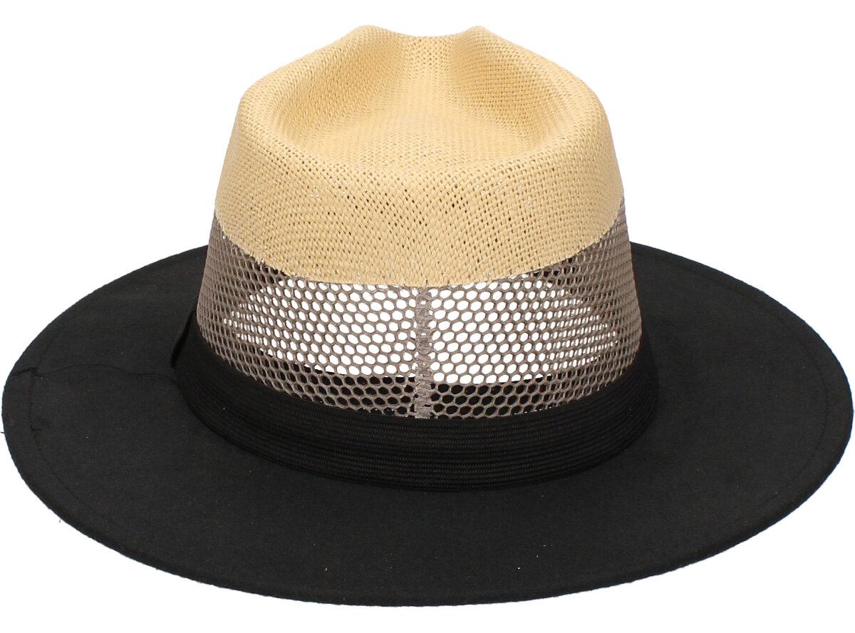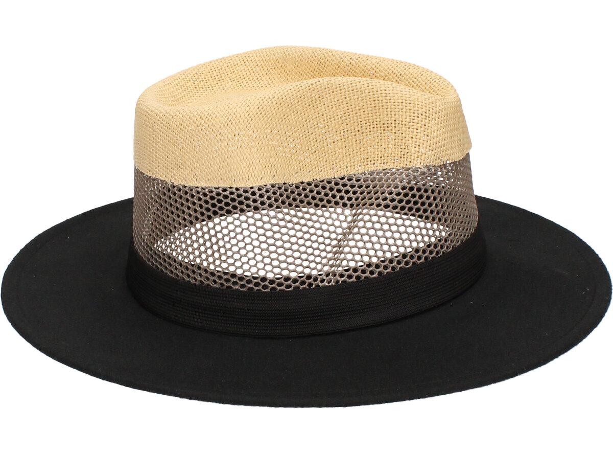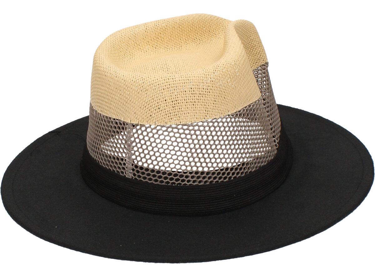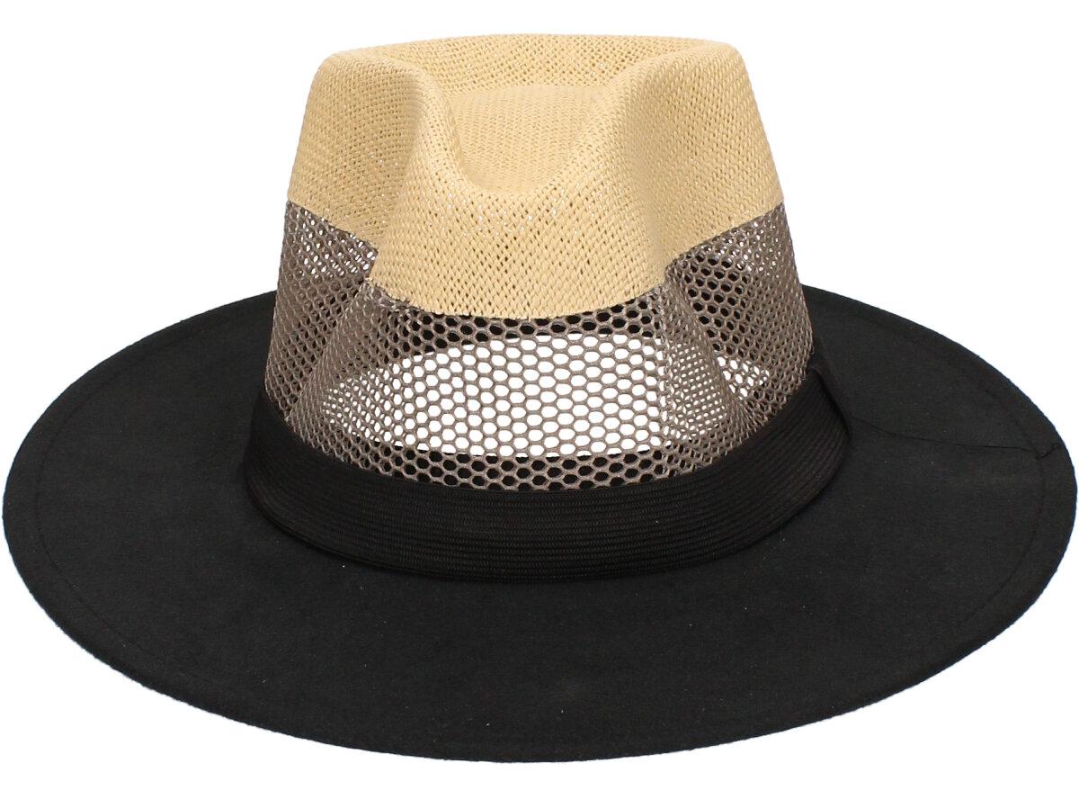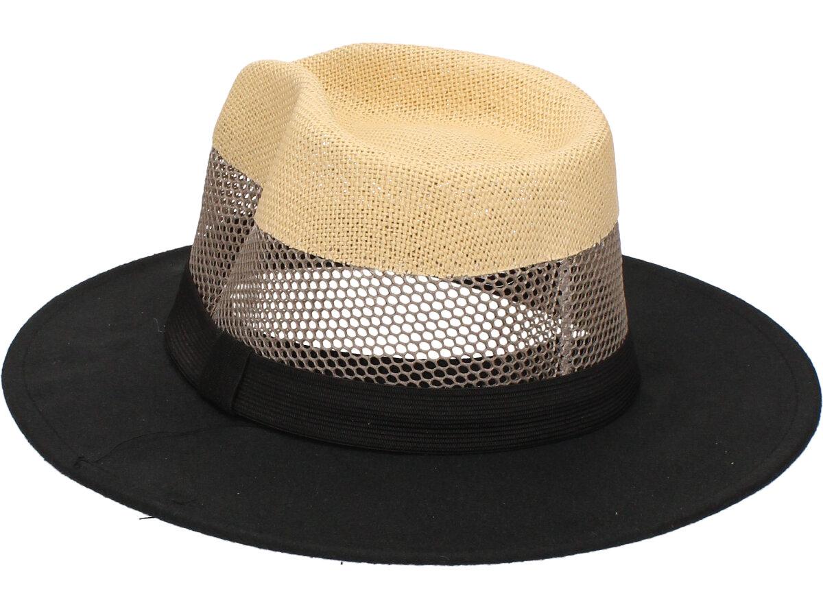 Černý letní klobouk se žlutou perforací a hnědým pruhem vel 57 je skvělým doplňkem pro dámy i pro pány. Tento klobouk je vhodný k jakémukoliv oblečení a je velmi praktický např. při horkých letních dnech, kdy vám chrání hlavu před úpalem a zabrání vysokému záření sluníčka do vašich očí. Klobouk je perforovaný, vzdušný. Klobouk je vyrobený s měkkého plastu.