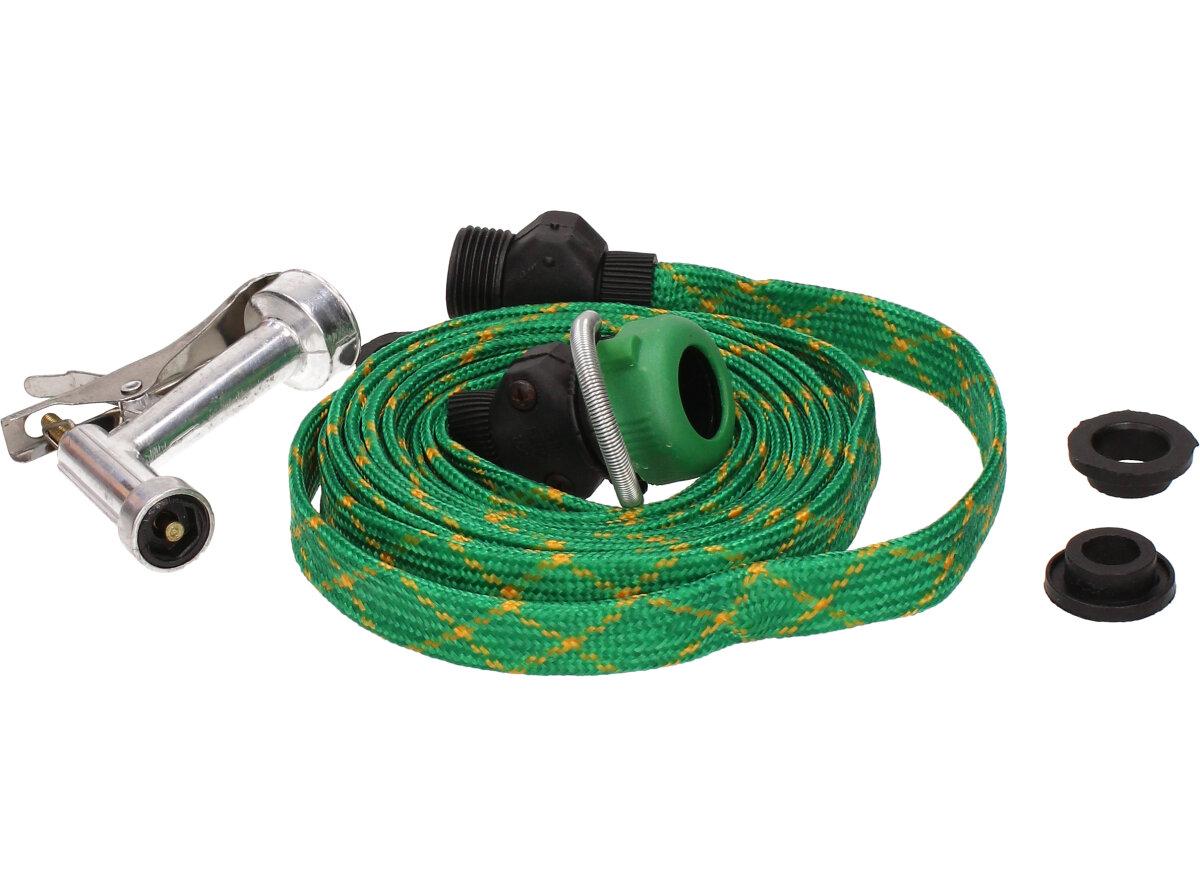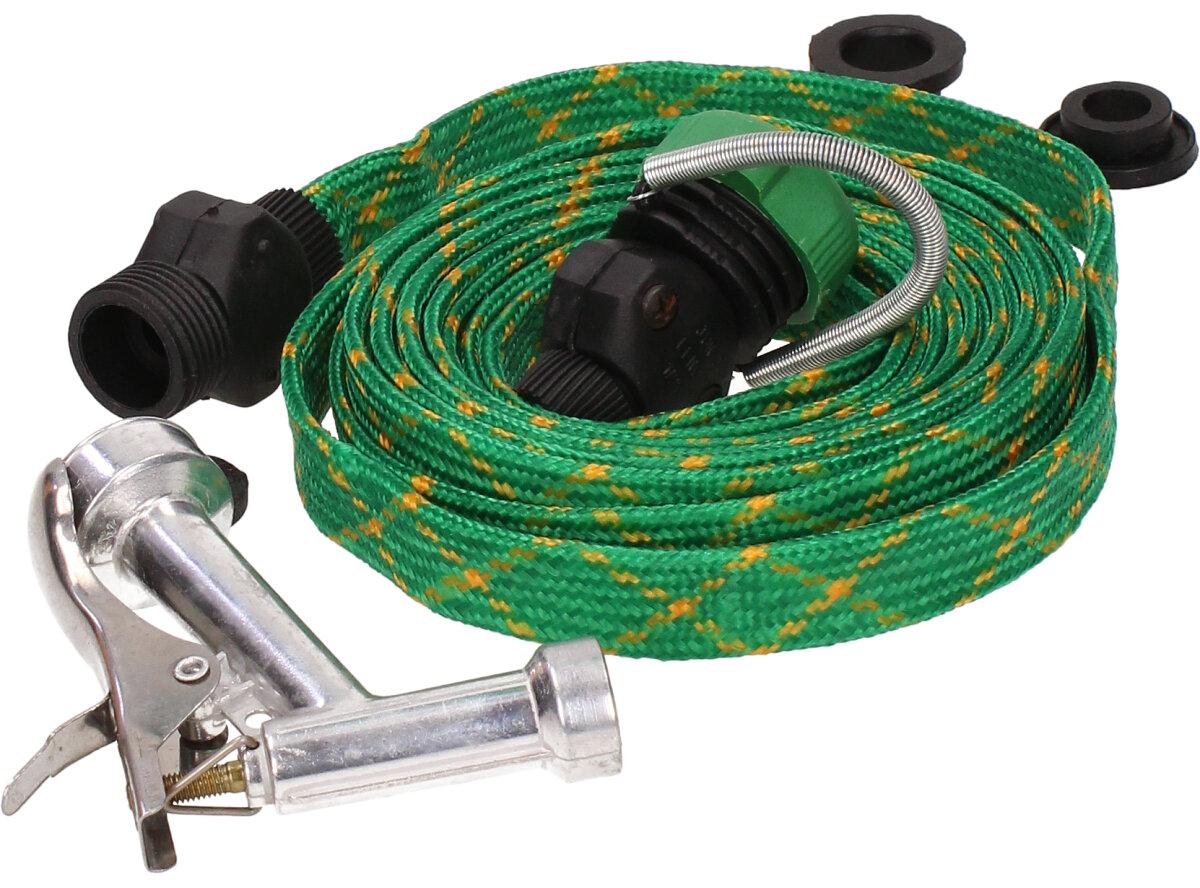 Hadice 5m tkaná s pistolí, nezabírá tolik místa, protkaná zelená.
