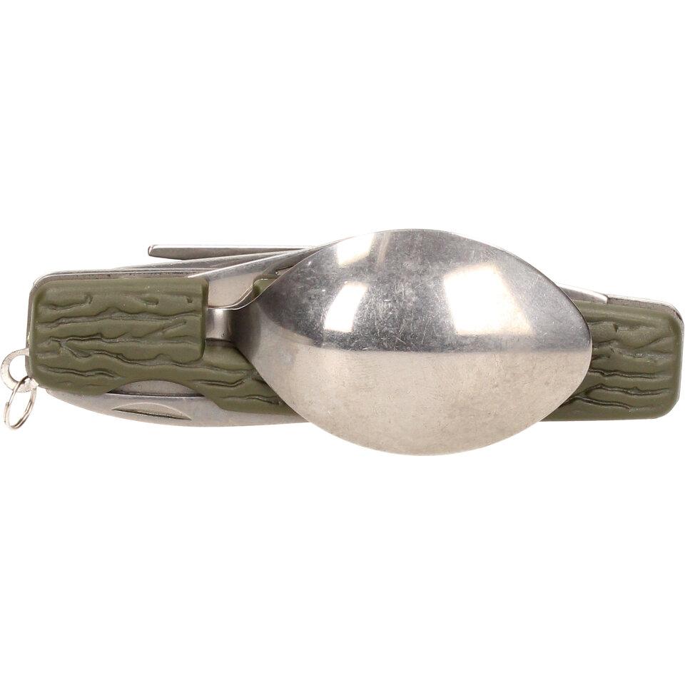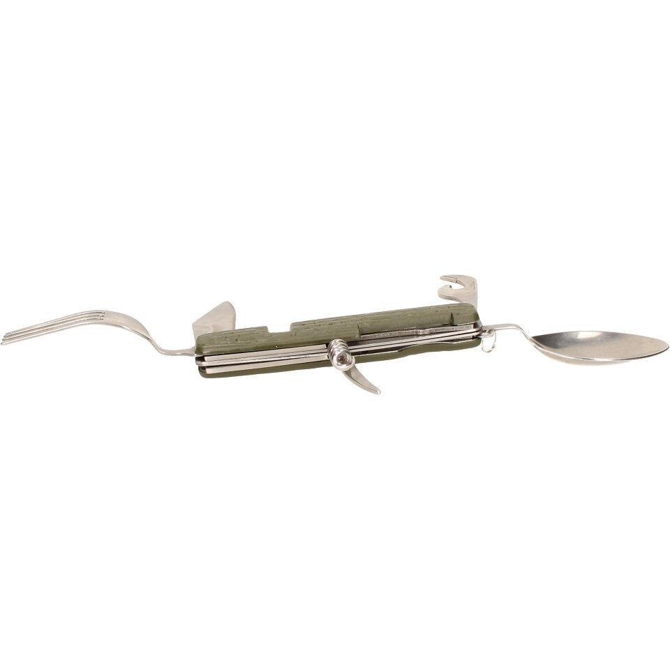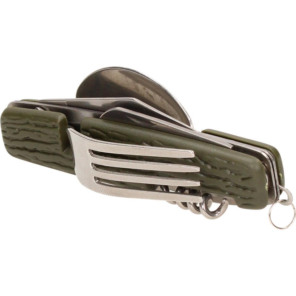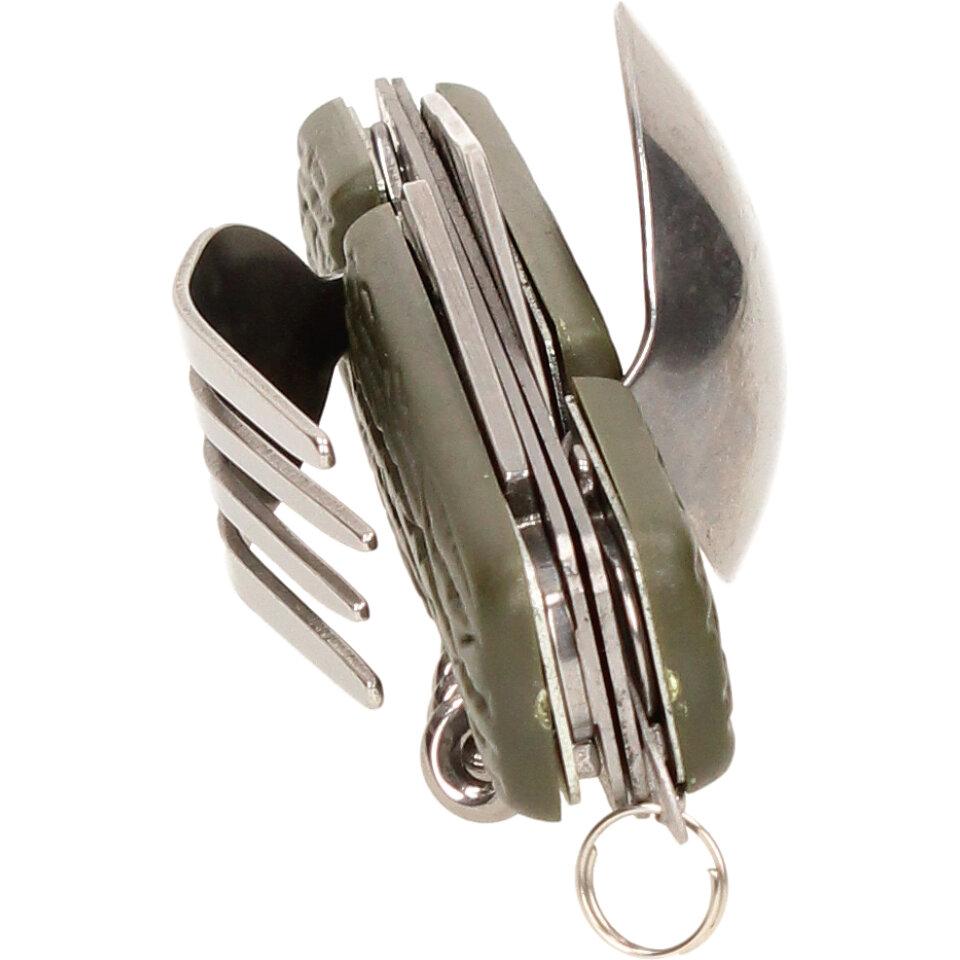 Multifunkční skládací kapesní příbor 7v1 khaki můžete dle potřeby rozložit do plnohodnotného příboru. Vejde se vám do kapsy, tudíž ho můžete mít neustále u sebe během rybaření, kempování a jiných volnočasových aktivitách. Příbor je dodáván v látkovém pouzdře na suchý zip, je vyrobený z kvalitního materiálu a vyznačuje se nízkou hmotností.