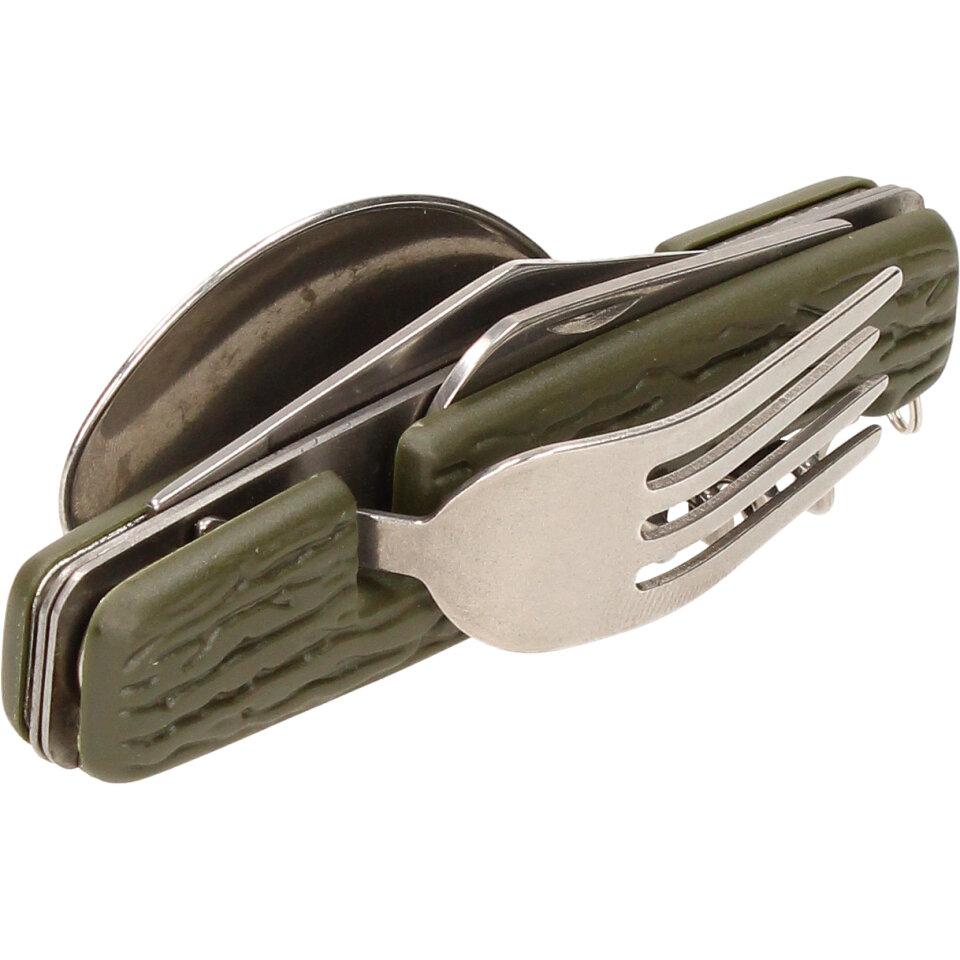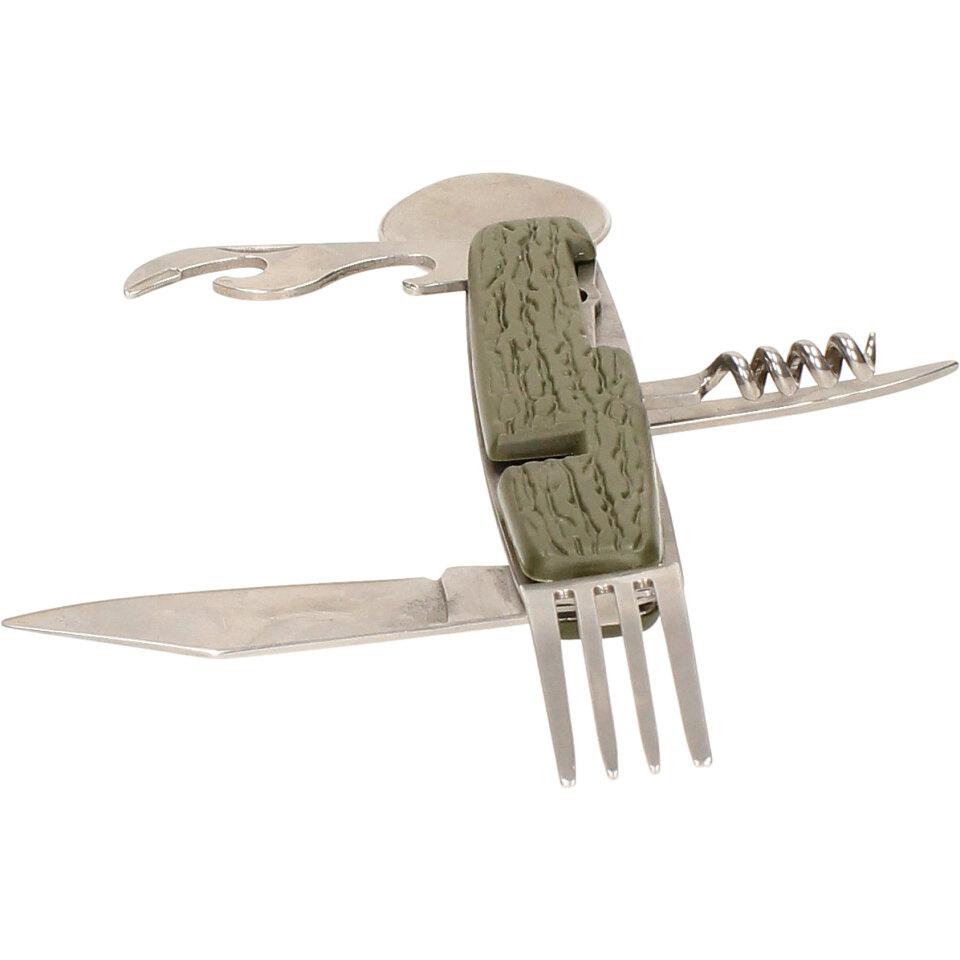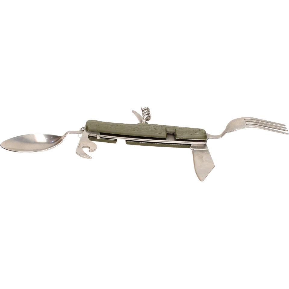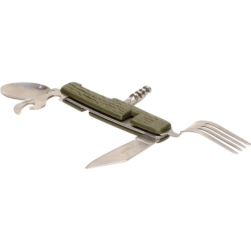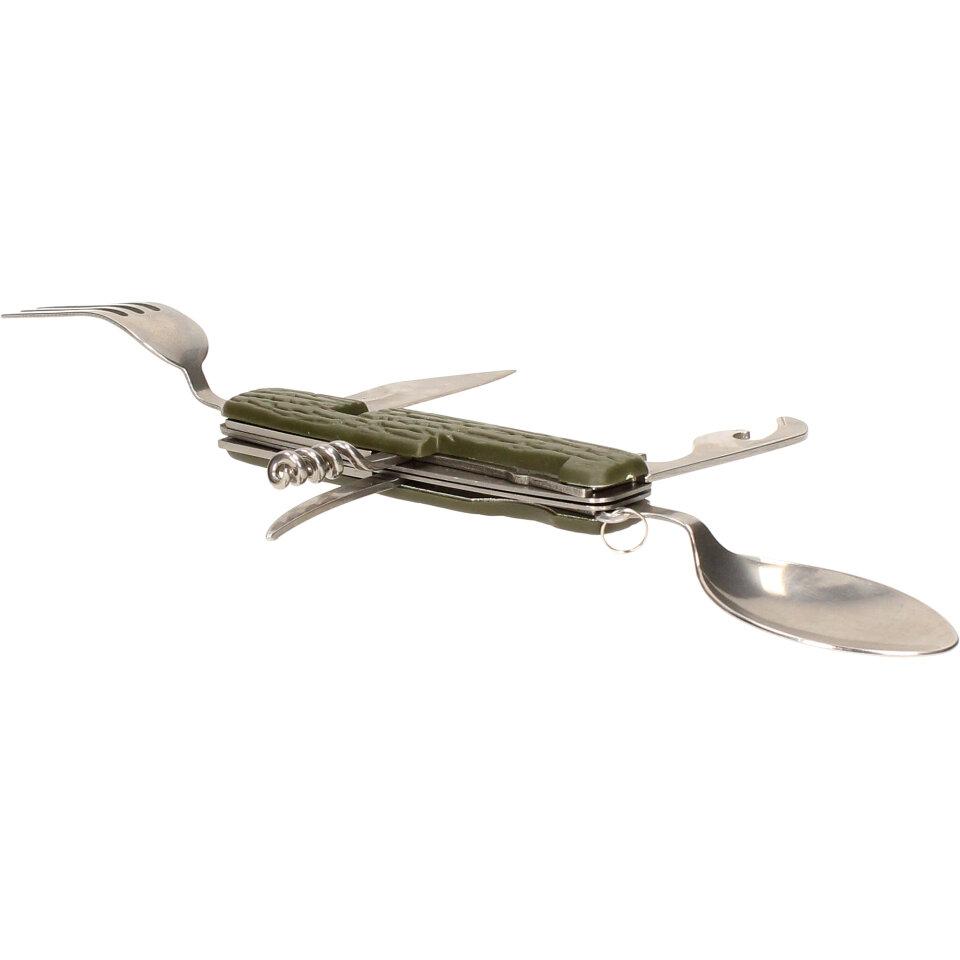 Multifunkční skládací kapesní příbor 7v1 khaki můžete dle potřeby rozložit do plnohodnotného příboru. Vejde se vám do kapsy, tudíž ho můžete mít neustále u sebe během rybaření, kempování a jiných volnočasových aktivitách. Příbor je dodáván v látkovém pouzdře na suchý zip, je vyrobený z kvalitního materiálu a vyznačuje se nízkou hmotností.