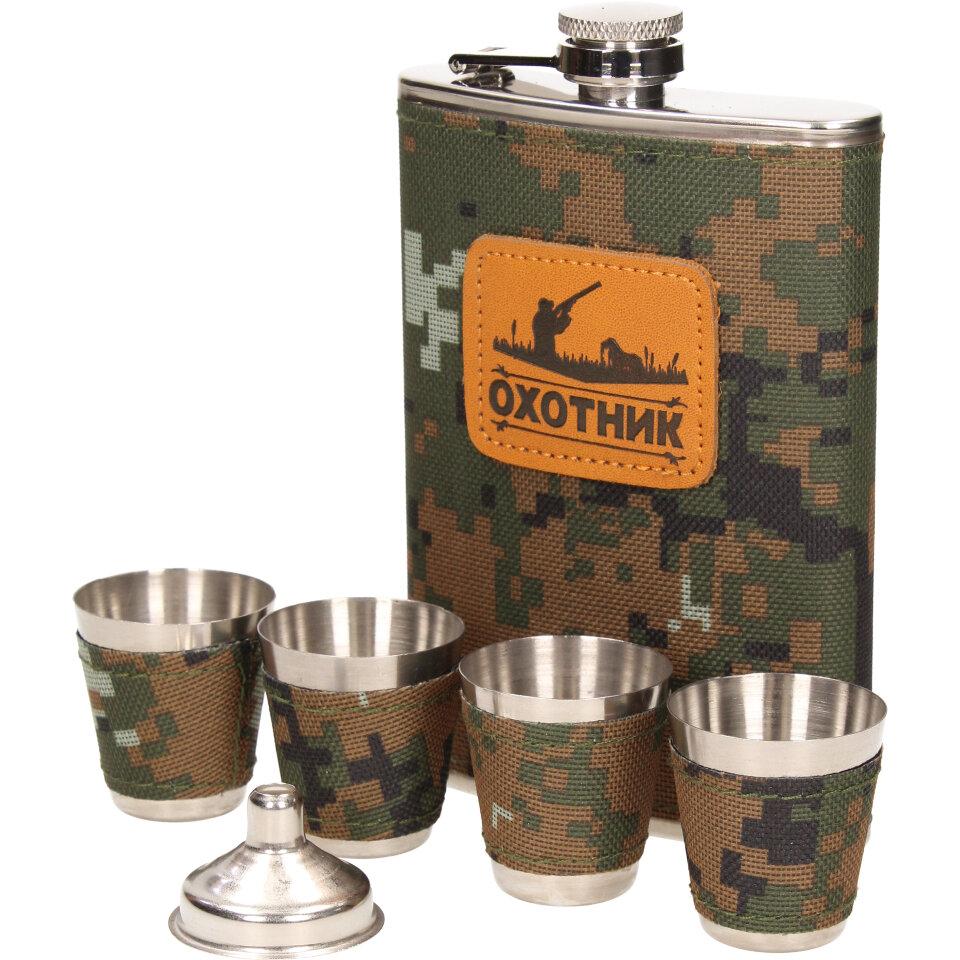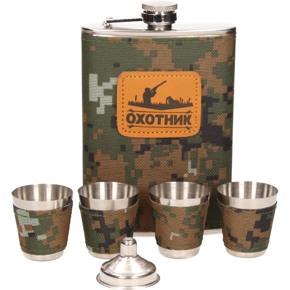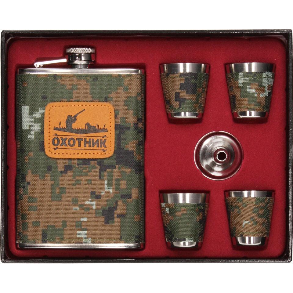 Dárková sada placatka khaki, čtyřmi panáky a nákevkou je vyrobena z nerezového materiálu a je vhodná jako vkusný dárek.