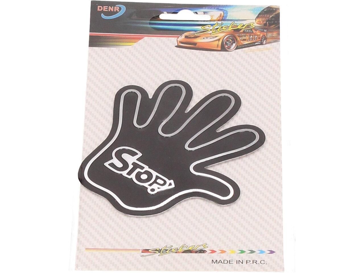 Samolepka černá ruka STOP o rozměrech 9 x 8 cm.