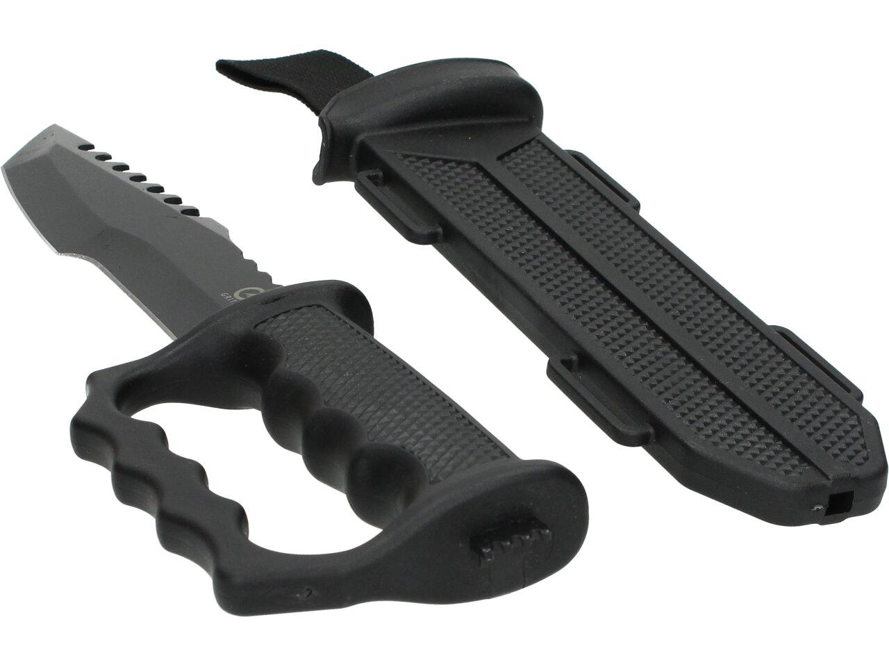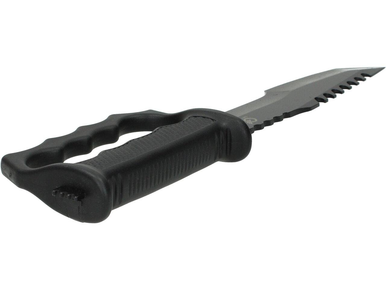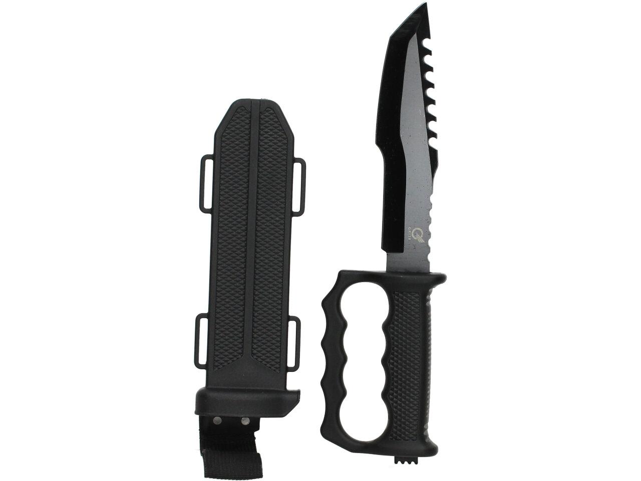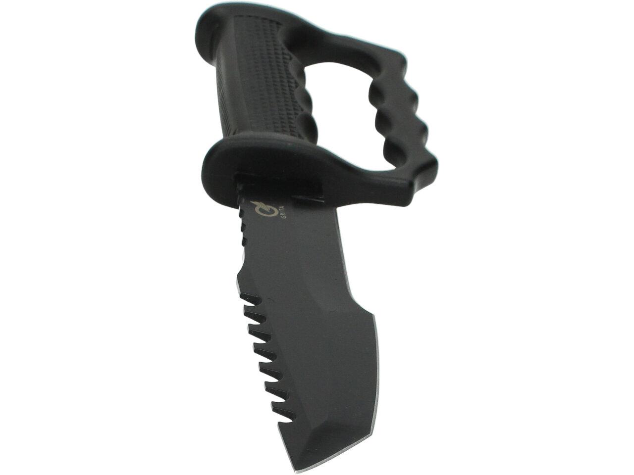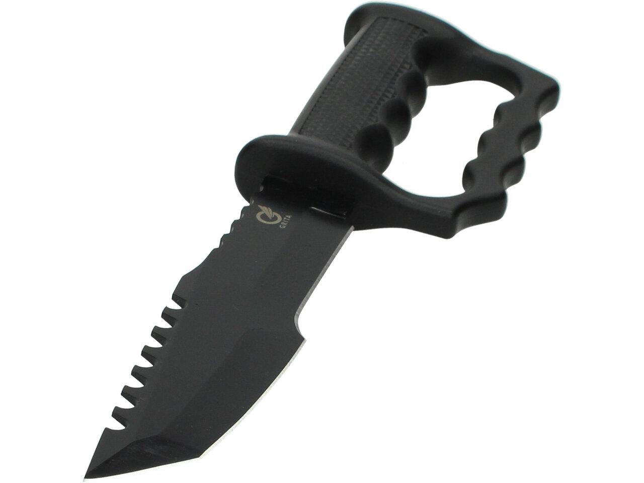 Tento krátký meč KATANA je navržen tak, aby přežil za všechny podmínky. Je určeno pro sebeobranu a každodenní použití. Nezbytné pro lovce, rybáře a cestovatele. Nůž je vyroben z nerezové oceli 440C. Rukojeť nože je vyrobena z tvrdé gumy. Pro bezpečné a pohodlné nošení nožů Grita je součástí balení odolné a univerzální pouzdro Secure-Ex se sponou na opasek.