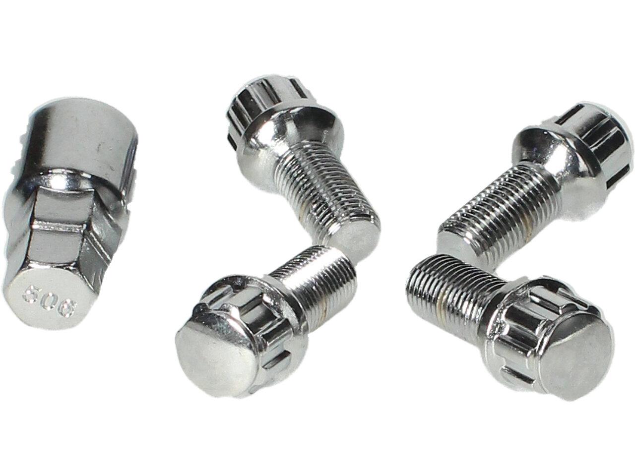 Pojistné šrouby kol ochraňují kola před demontáží běžným nářadím. Sada 4 kusy, vždy montuje pouze jeden pojistný šroub na jedno kolo. Použitelné pro slitinové a ocelové disky. Kvalitní povrchová úprava zajišťující dlouhodobě elegantní vzhled.