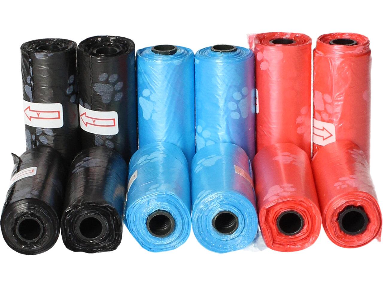 Jste vzorný paníček a po svých čtyřnohých miláčkách uklízíte exkrementy? Tato 12 kusová sada sáčků je pro Vás tím pravým. Připnete si ruličku k vodítku a můžete cestovat. V balení jsou sáčky modré, červené a černé.