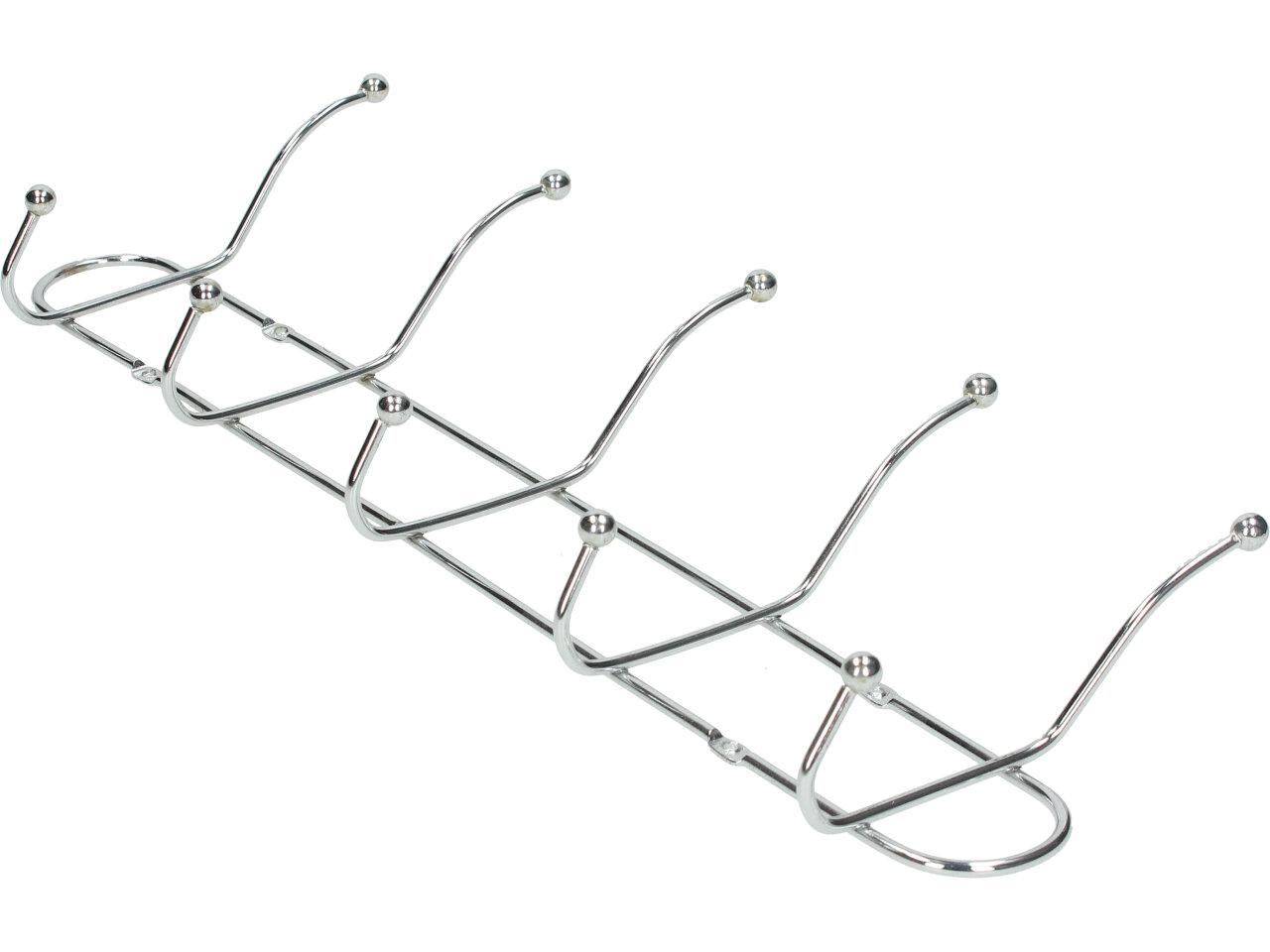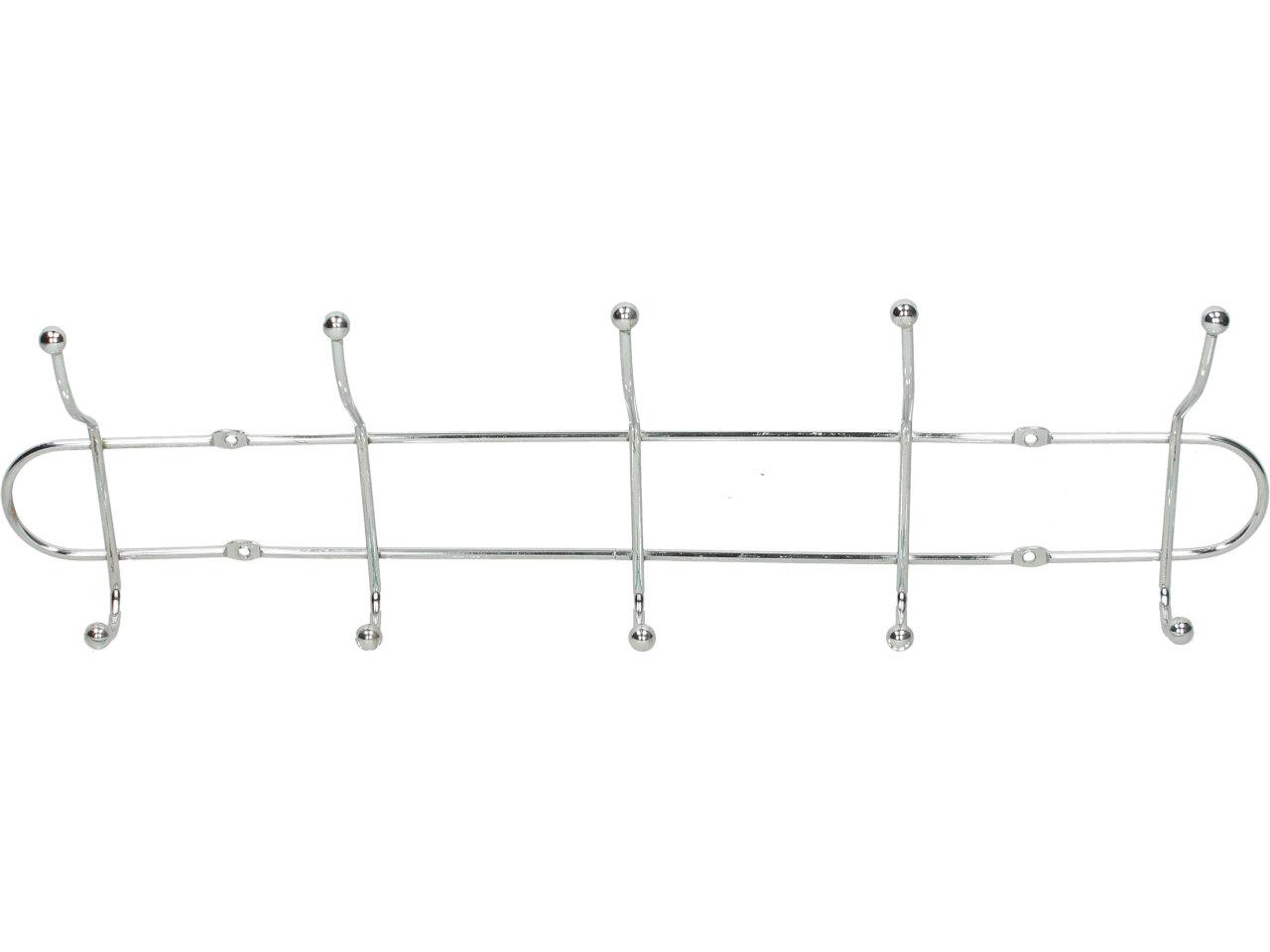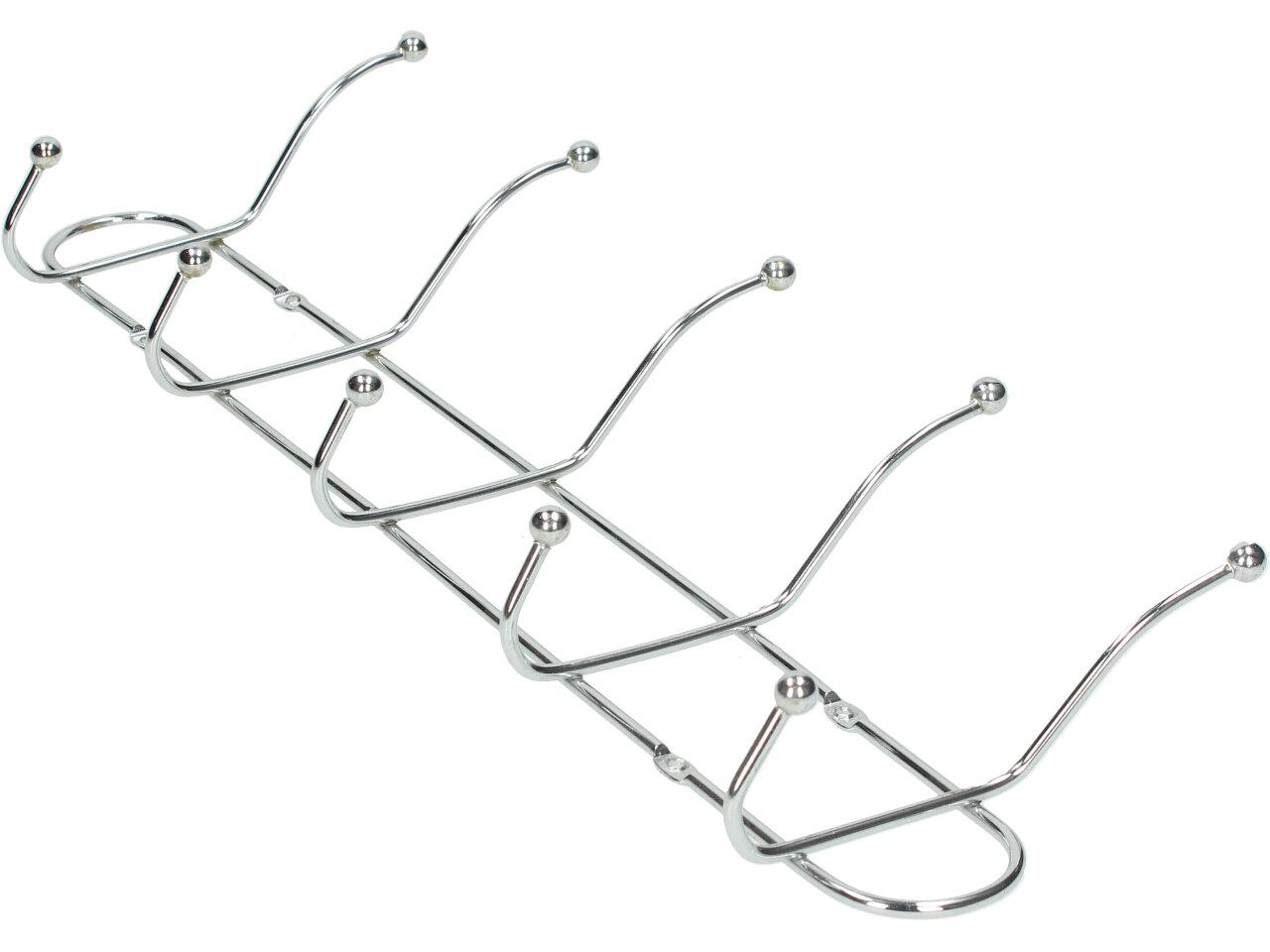 Nástěnný věšák chromovaný je jednoduchý, praktický a zapadne do každého interiéru, ať už doma, v kanceláři, koupelně nebo šatně. Je tvořen jednoduchou ocelovou konstrukcí s nerezovým vzhledem. Disponuje 5 praktickými háčky, takže Váš prostor zůstává dobře organizovaný pro Vaše osobní věci, jakými jsou klobouky, kabáty, bundy, šály, ručníky, kabelky, deštníky, tašky, klíče nebo jiné věci.