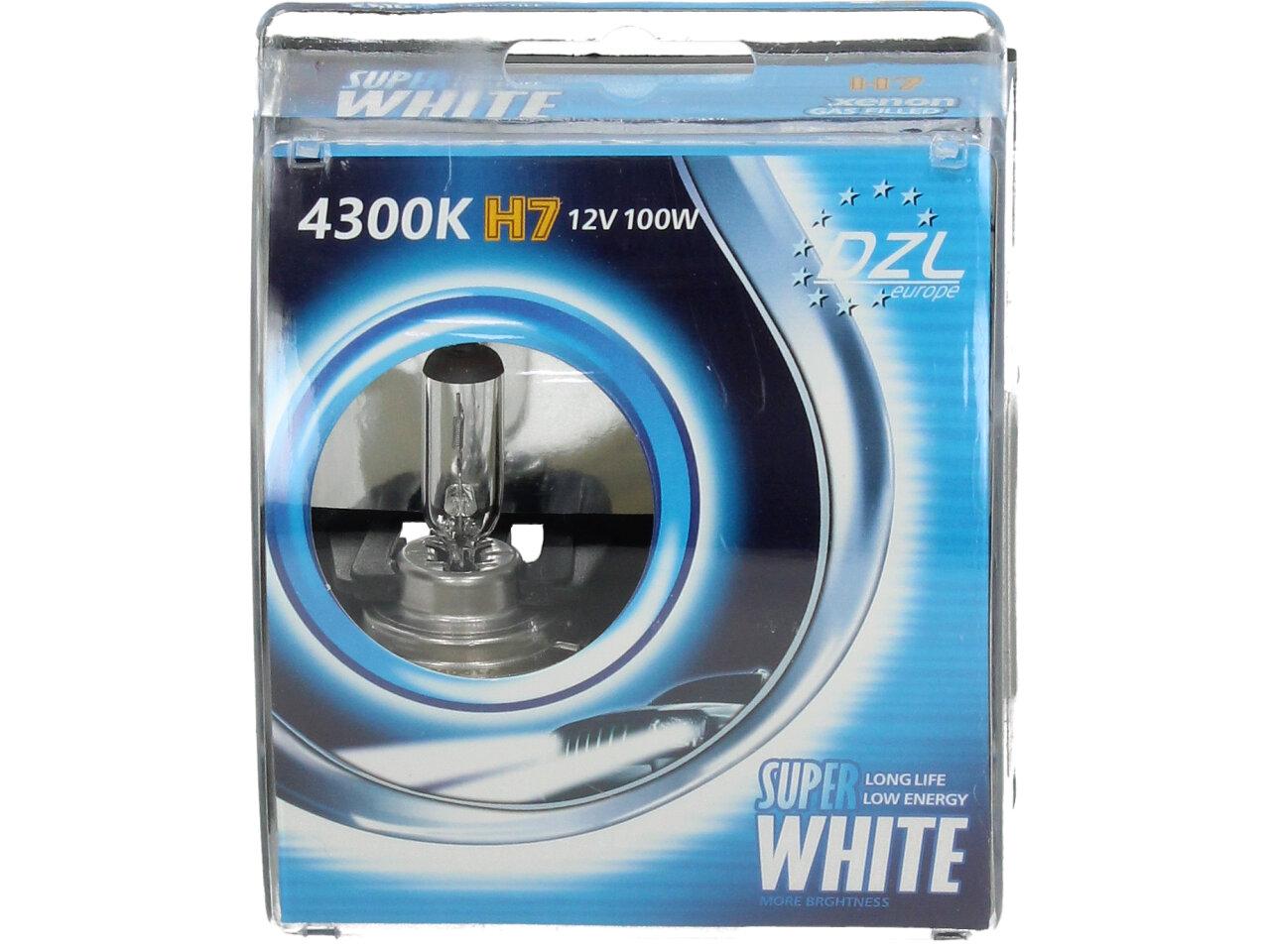 Velice odolná H7 žárovka s barvou světla 4300K sada 2 kusy do světlometu do auta na 12V jako náhrada za klasickou nevýkonou žárovku H7.