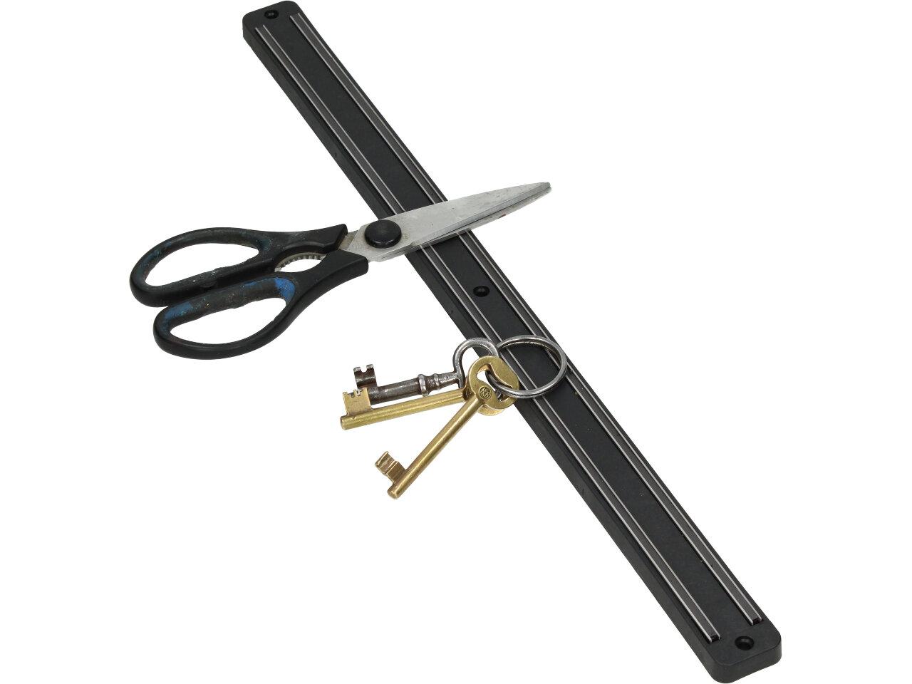Magnetická lišta do kuchně je skvělým doplňkem pro vaši kuchyň, díky tomu že lišta visí, ušetříte mnoho místa. Díky magnetu, lze na lištu přikládat vše z kovu jako třeba nože, naběračky, nůžky a podobně. Lištu můžete také využít třeba v dílně na uchycení nářadí, hřebíků, vrutů, šroubováků.. Délka magnetické lišty je 50 cm a barva je černá.