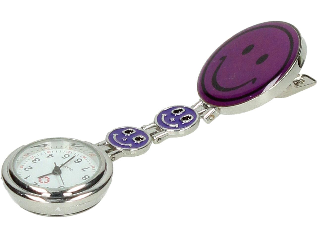 Závěsné hodinky fialové jsou vhodné na připnutí na oblečení, tyto hodinky budete mít pořád na očích a nebudete muset řeišt kolik je hodin, stačí se jen podívat. Závěsné hodinky jsou vhodné pro sestřičky, prodavačky a pro všechny, kteří chtějí mít připnuté hodinky na svých oděvech.