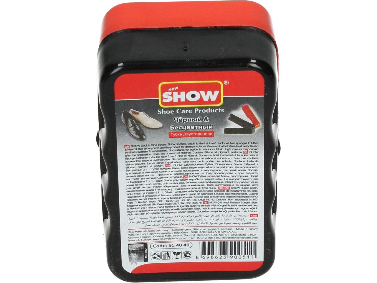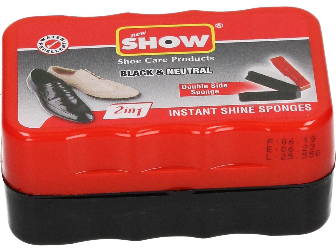 SHOW houbička napuštěná krémem je velmi účinný krém na vyleštění kůže, holinek, či jiné obuvi. Krém posiluje materiál obuvy, a dodá ji zářivý lesk. Je odolný proti mrazu, slunci i dešti a prodlužuje životnost Vašich bot. Krém je dodáván v černé barvě. Aplikujte na boty jemným třením houbičky, poté nechte 5-10 minut zaschnout. Tímto docílíte lesklého a zářivého efektu, jako by jste si boty zrovna koupili.