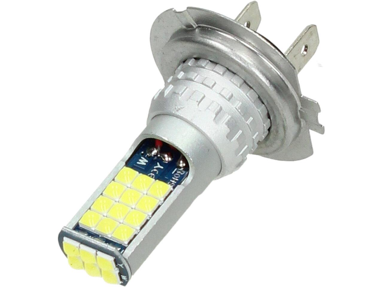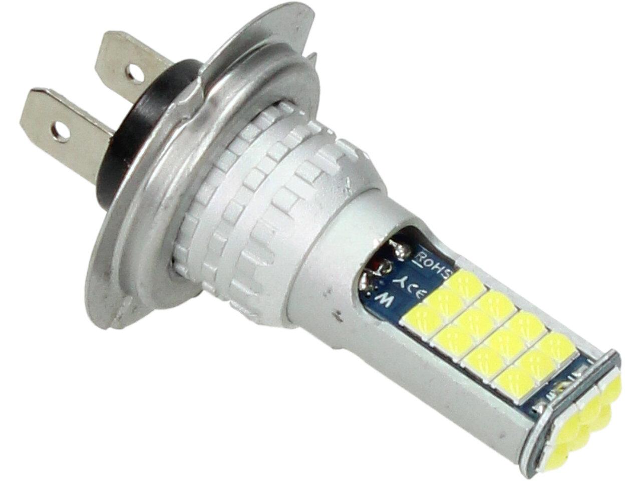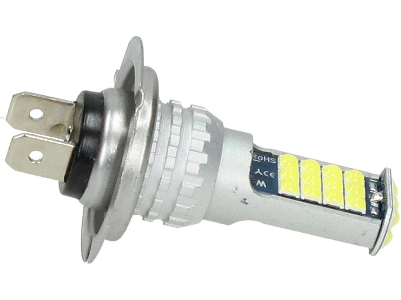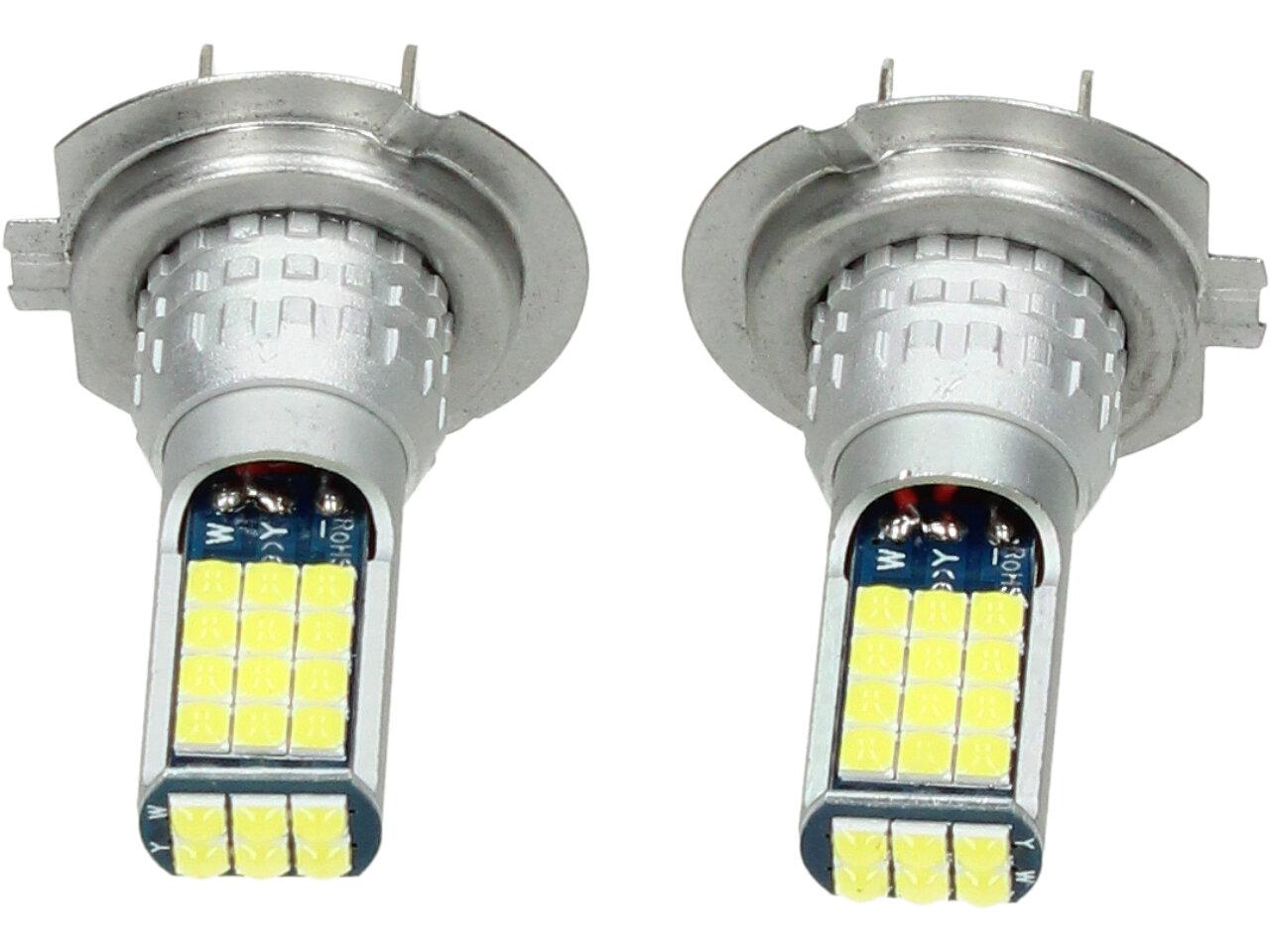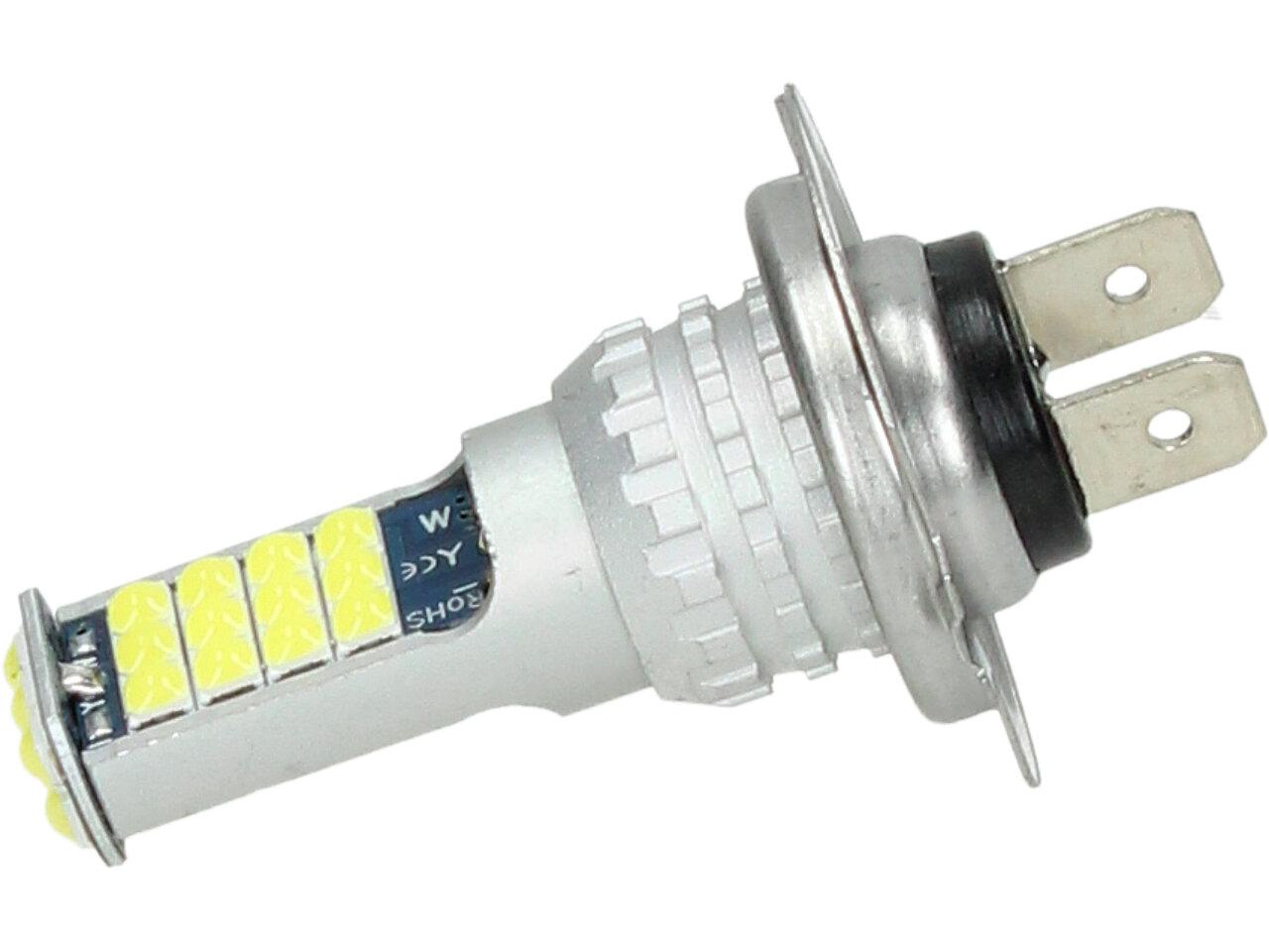 LED autožárovka H7 12V, obashuje 30 SMD LED a je prodávána v sadě 2 kusy. Led žárovka je náhradou za klasickou žárovku H7, studená bílá