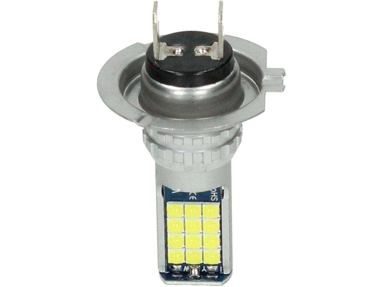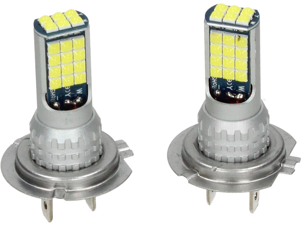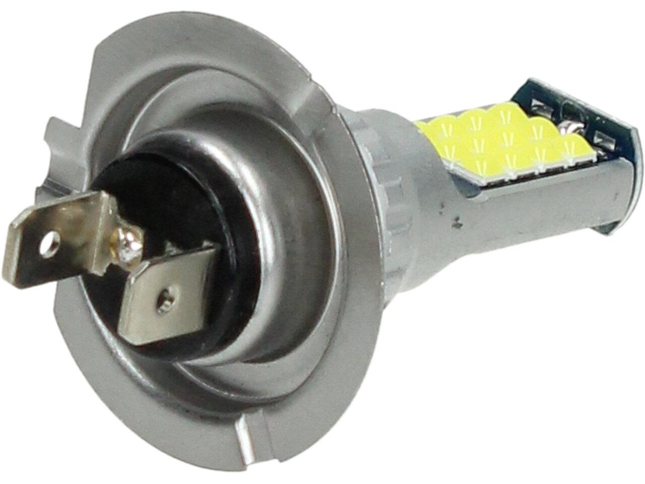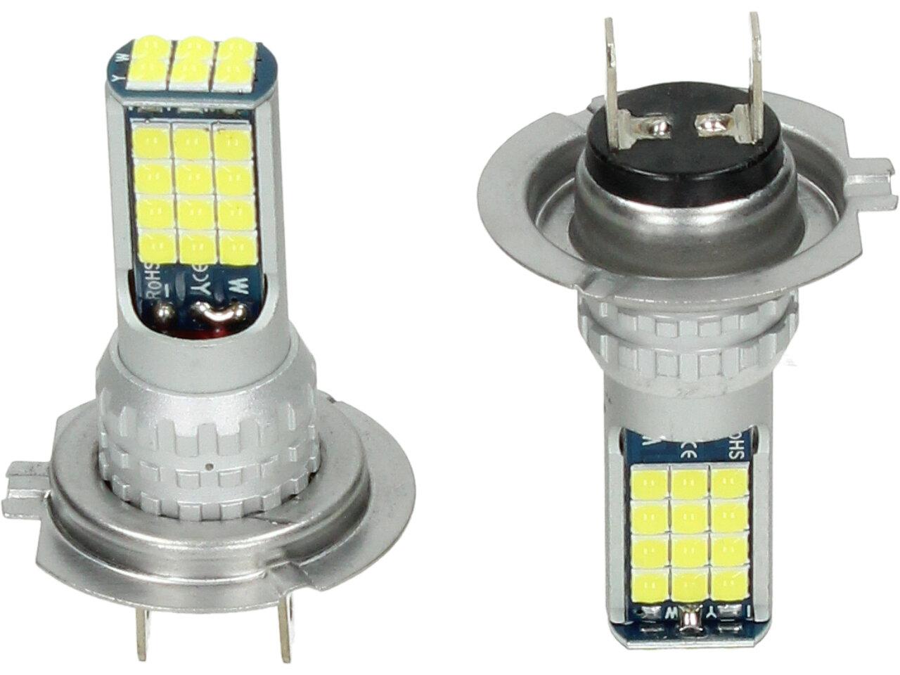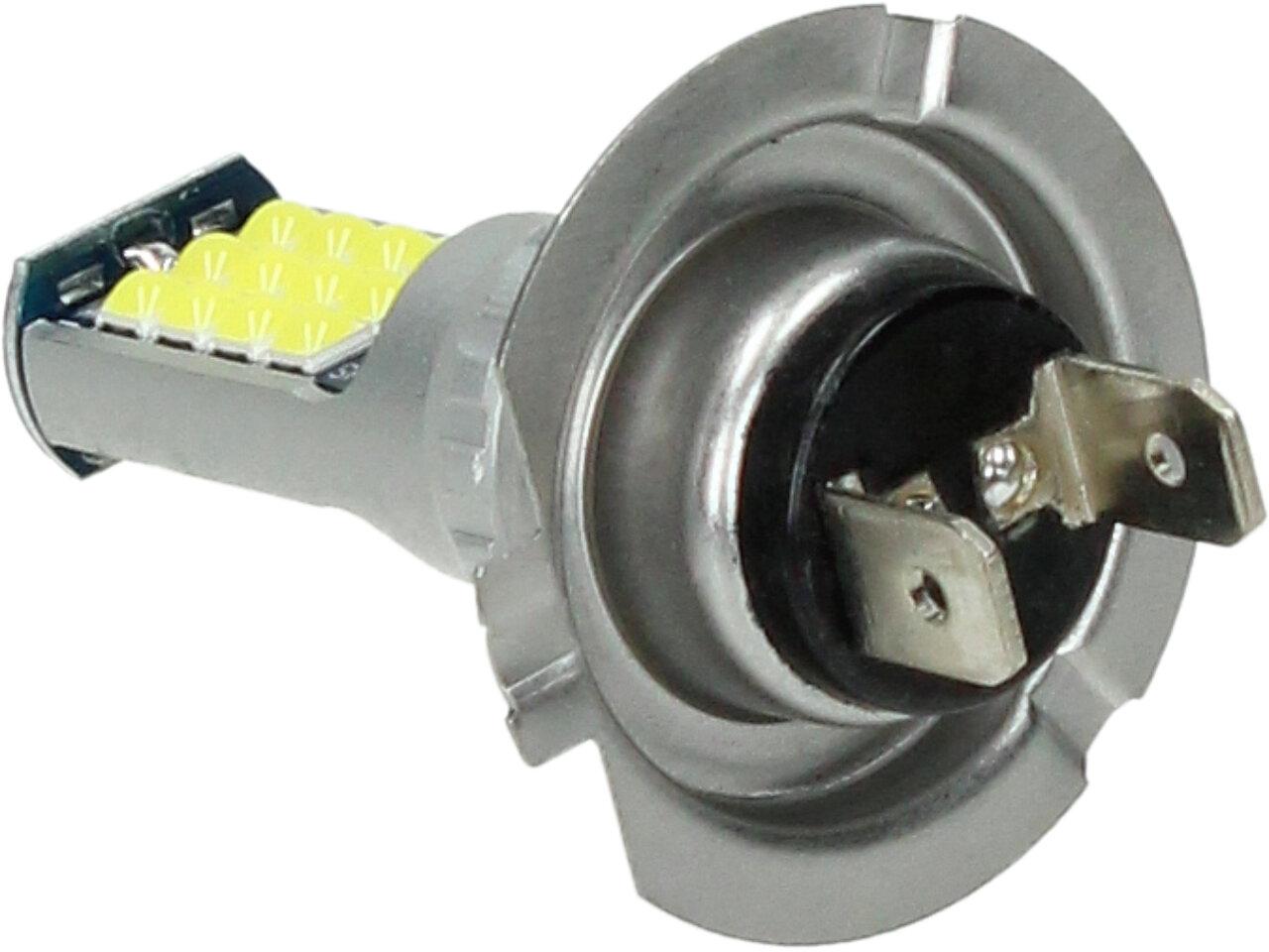 LED autožárovka H7 12V, obashuje 30 SMD LED a je prodávána v sadě 2 kusy. Led žárovka je náhradou za klasickou žárovku H7, studená bílá