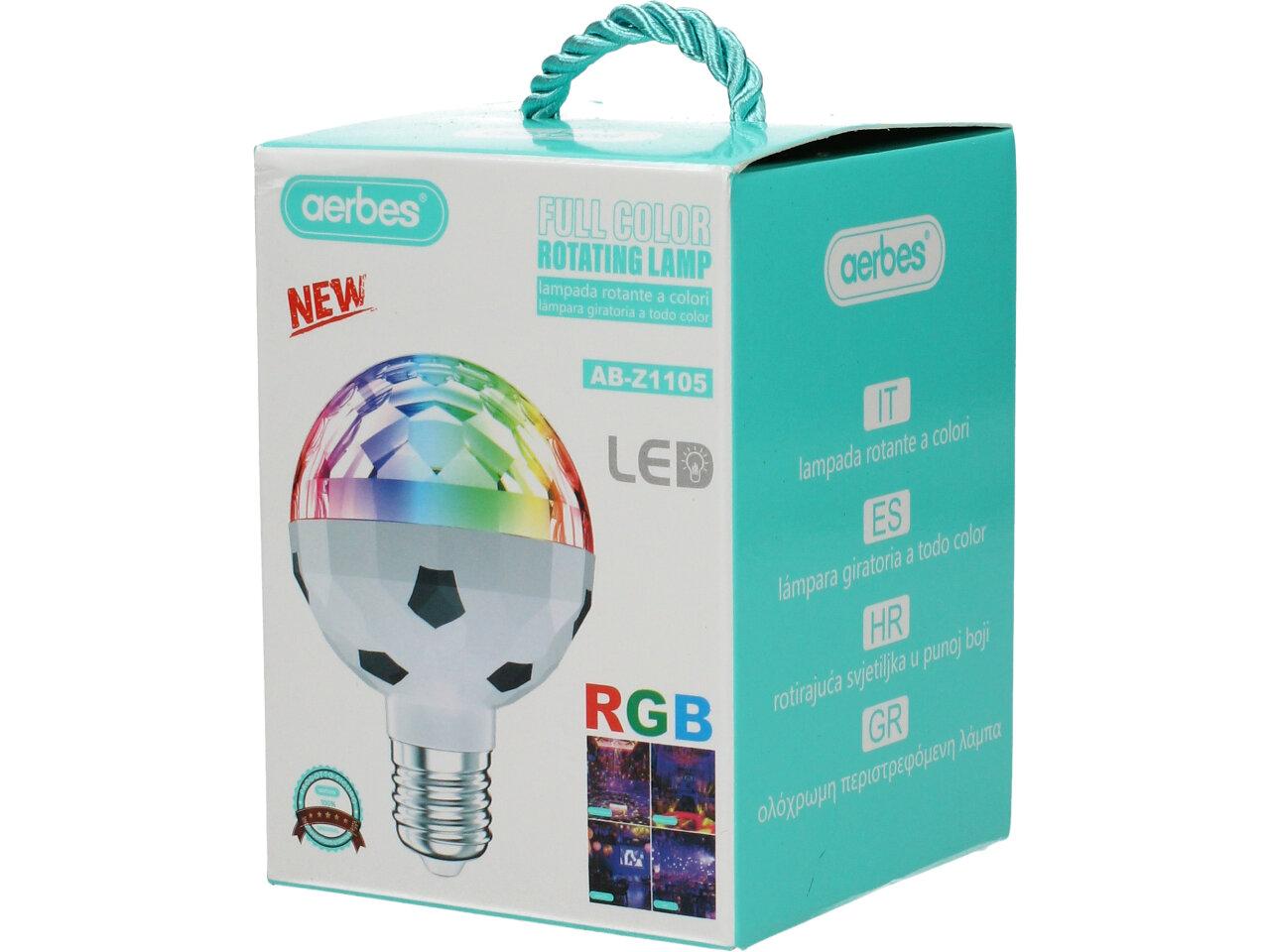 Žárovka vytváří Stroboskopický efekt, tato RGB plně barevná LED otočná žárovka je dobrým způsobem, jak zlepšit a rozjet každou párty. Žárovka zajišťuje automatickou změnu barvy a rotaci červené, modré a zelené. Vytváří stroboskopický efekt disko koule.
