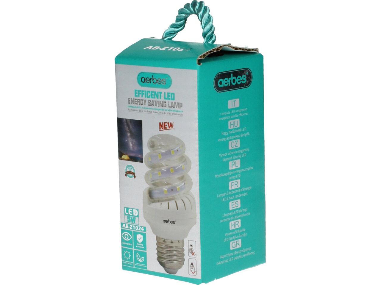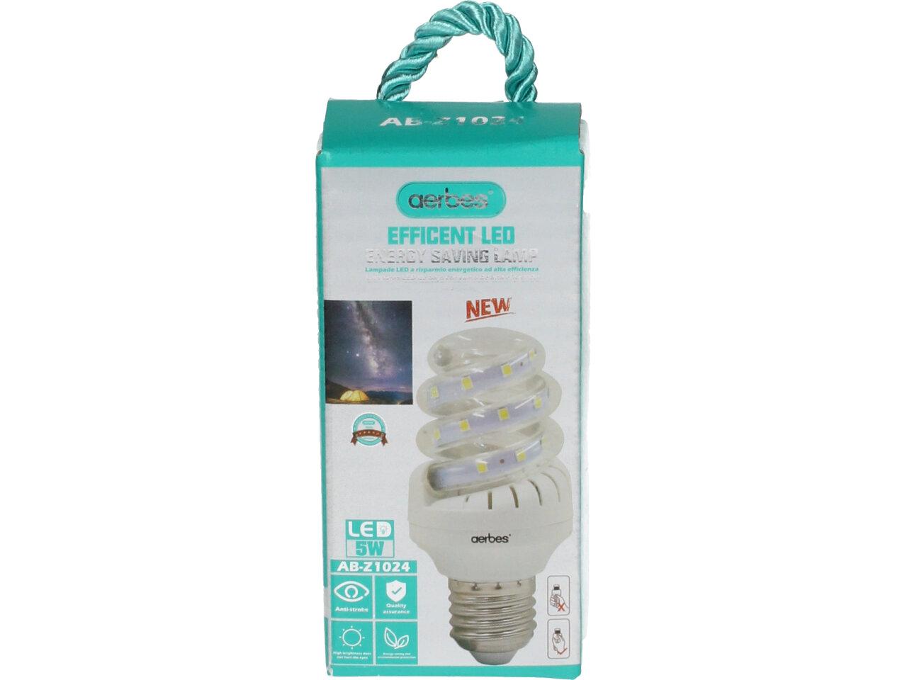 Úsporná žárovka 5W Spiral Led E27 Aerbes AB-Z1024 je kvalitní náhrada za 100W klasickou žárovku. Žárovka je ve skleněné trubici, umožňující dobré chlazení LED diod, které mají dlouhou životnost. Žárovka je určena na napětí 220V a vyzařuje teplotu světla 6500K. Úsporná žárovka 5W Spiral Led E27 Aerbes AB-Z1024 je LED žárovka klasického tvaru s tím rozdílem, že jsou LED CHIPY ve skleněné trubici ve tvaru baňky s nejpoužívanějším závitem E27, které svítí bílým světlem (tzv. bílá studená).