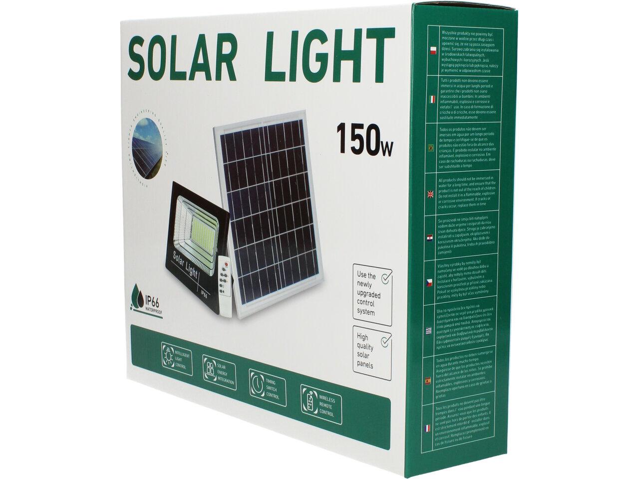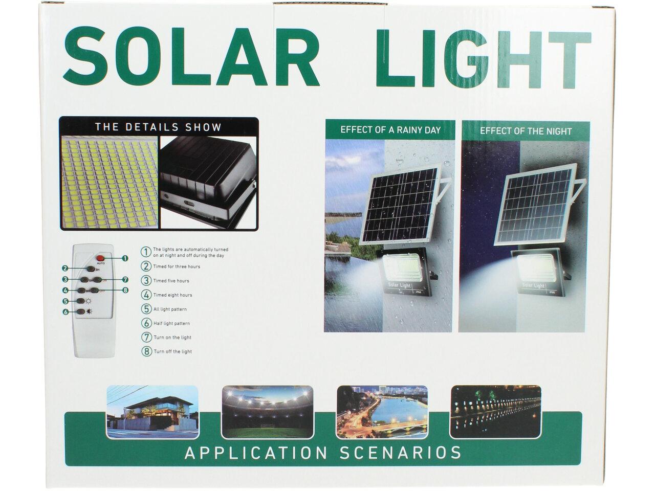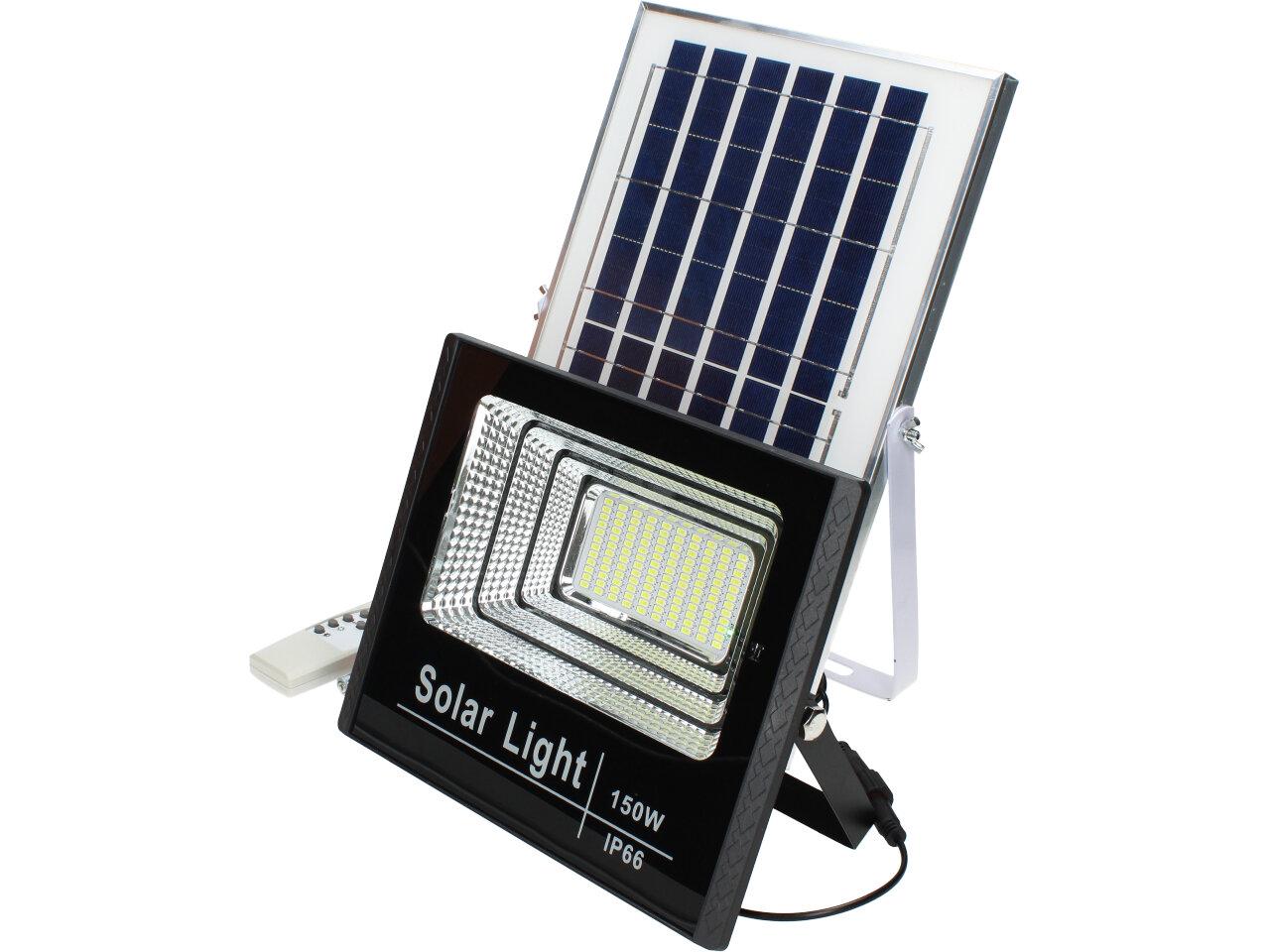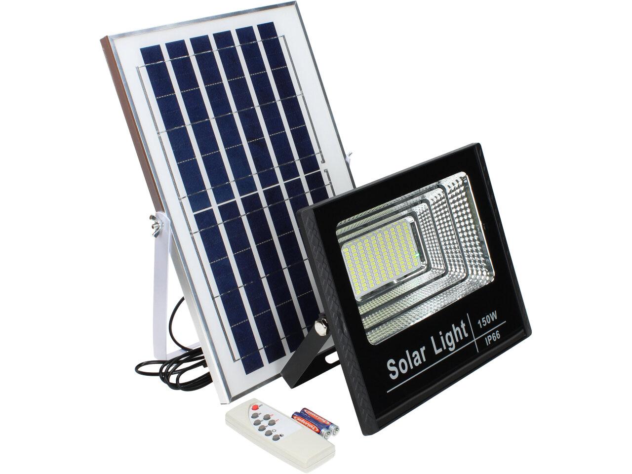 Solární osvětlovací LED technika Reflektor 150W se solárním panelem a dálkovým ovladačem. Díky oddělenému solárnímu panelu můžete používat třeba v karavanu, pod stanem, nebo vjezdové bráně. Solární reflektor o výkonu 150W svítí na vzdálenost cca 6 metrů. U solárního systému lze pomocí dálkového ovladače nastavit automatické zapnutí při setmění, stálé svícení a svícení na daný časový úsek. Pracovní doba na plné nabití cca 6-8 hodin. Spojovací materiál, držáčky a šroubky jsou součástí balení.