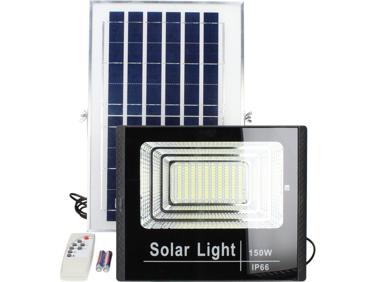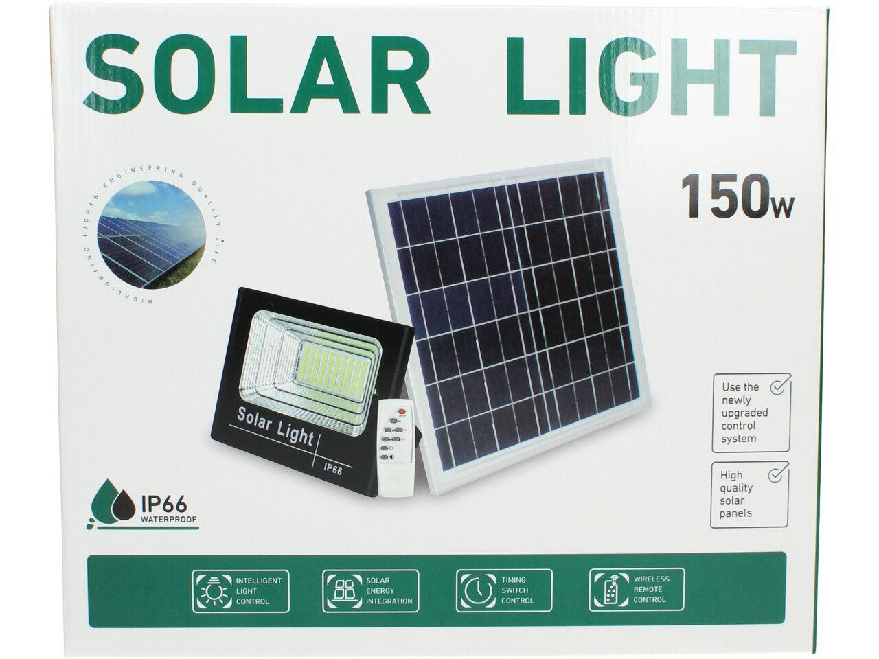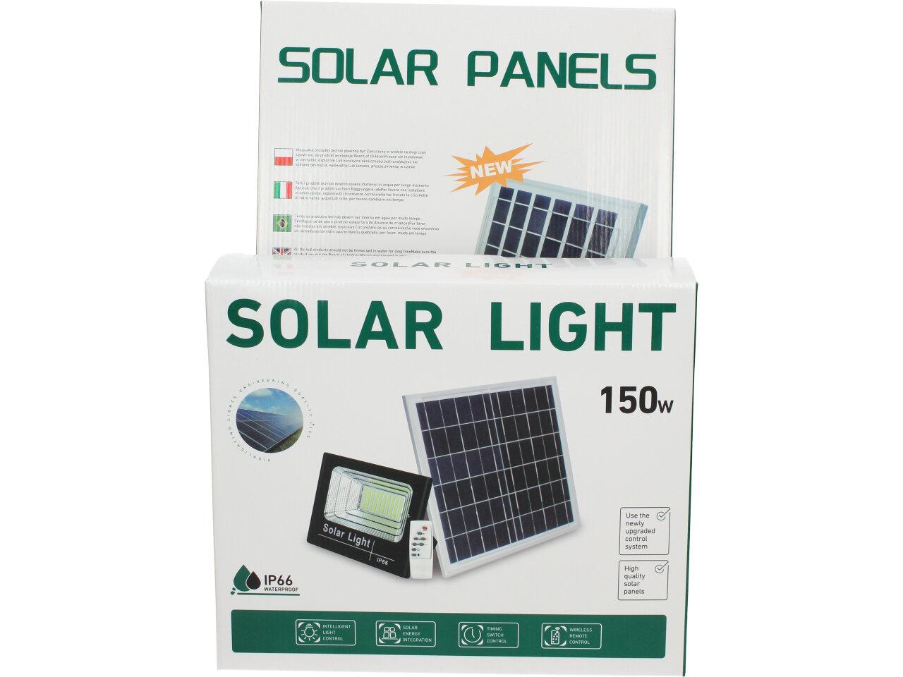 Solární osvětlovací LED technika Reflektor 150W se solárním panelem a dálkovým ovladačem. Díky oddělenému solárnímu panelu můžete používat třeba v karavanu, pod stanem, nebo vjezdové bráně. Solární reflektor o výkonu 150W svítí na vzdálenost cca 6 metrů. U solárního systému lze pomocí dálkového ovladače nastavit automatické zapnutí při setmění, stálé svícení a svícení na daný časový úsek. Pracovní doba na plné nabití cca 6-8 hodin. Spojovací materiál, držáčky a šroubky jsou součástí balení.
