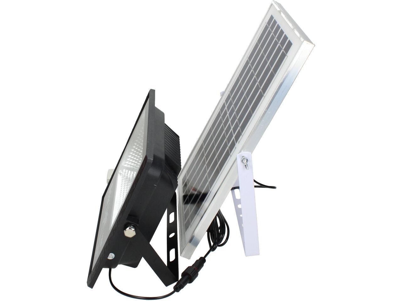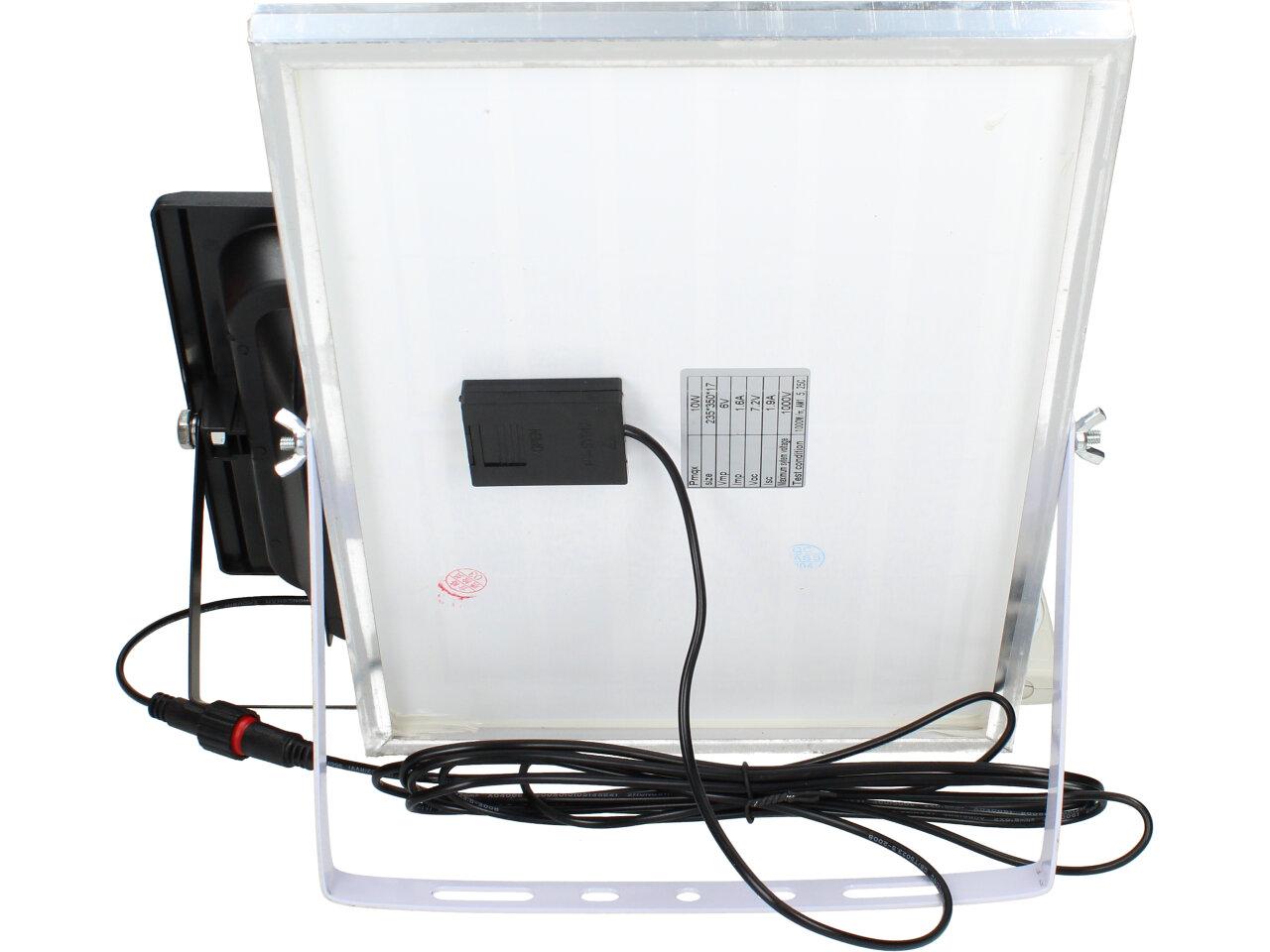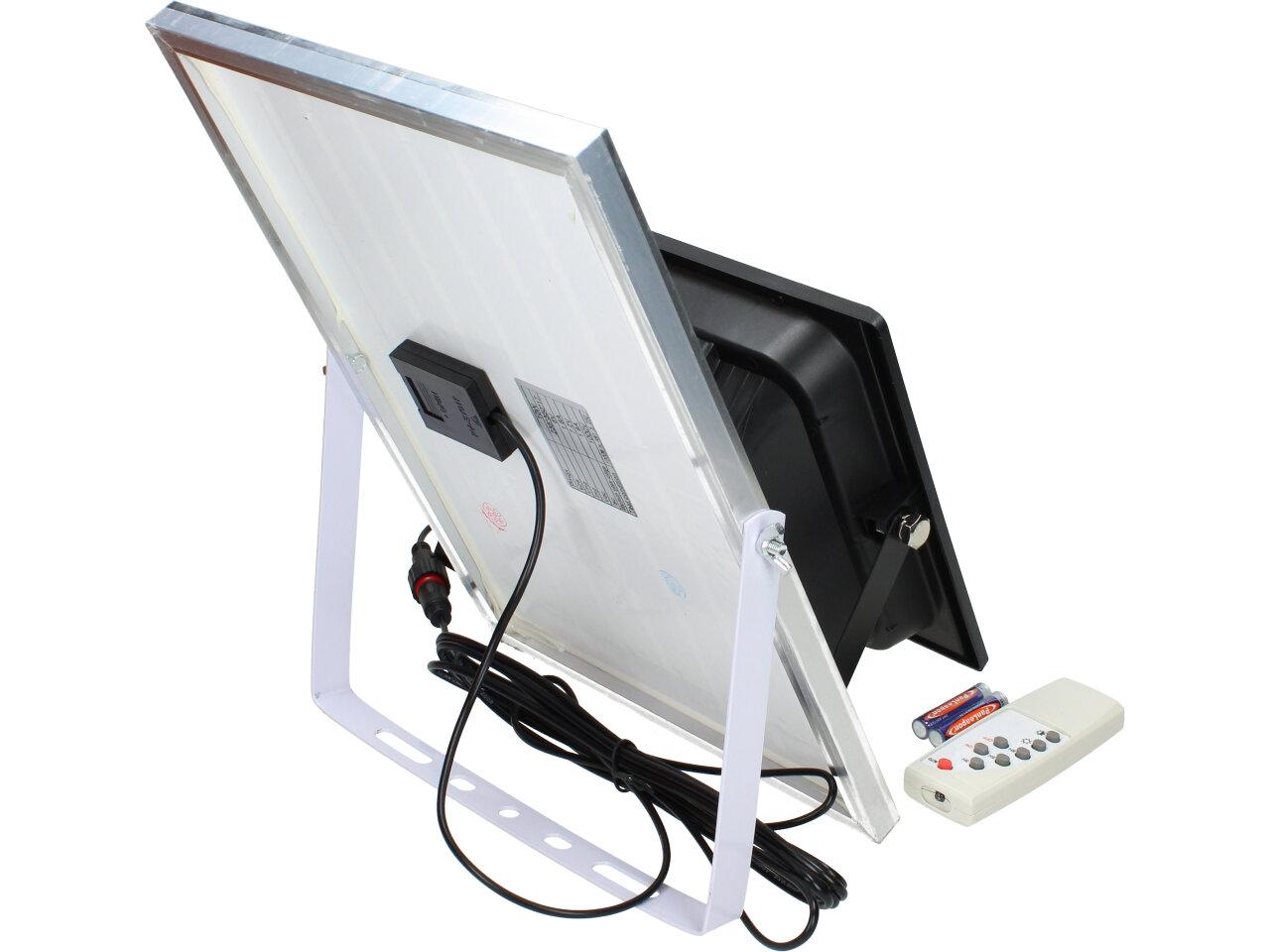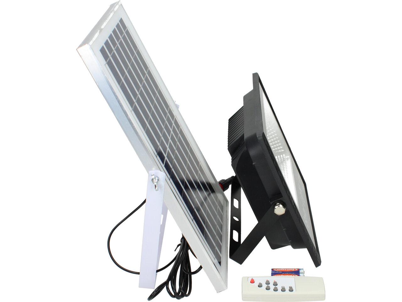Solární osvětlovací LED technika Reflektor 150W se solárním panelem a dálkovým ovladačem. Díky oddělenému solárnímu panelu můžete používat třeba v karavanu, pod stanem, nebo vjezdové bráně. Solární reflektor o výkonu 150W svítí na vzdálenost cca 6 metrů. U solárního systému lze pomocí dálkového ovladače nastavit automatické zapnutí při setmění, stálé svícení a svícení na daný časový úsek. Pracovní doba na plné nabití cca 6-8 hodin. Spojovací materiál, držáčky a šroubky jsou součástí balení.