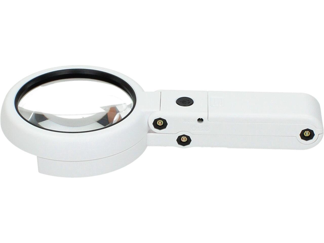 Světlo LED lze snadno zapnout a vypnout pomocí tlačítka na rukojeti, což zajišťuje jednoduché ovládání. Baterie jsou součástí balení, takže lupa je připravena k použití ihned po rozbalení.