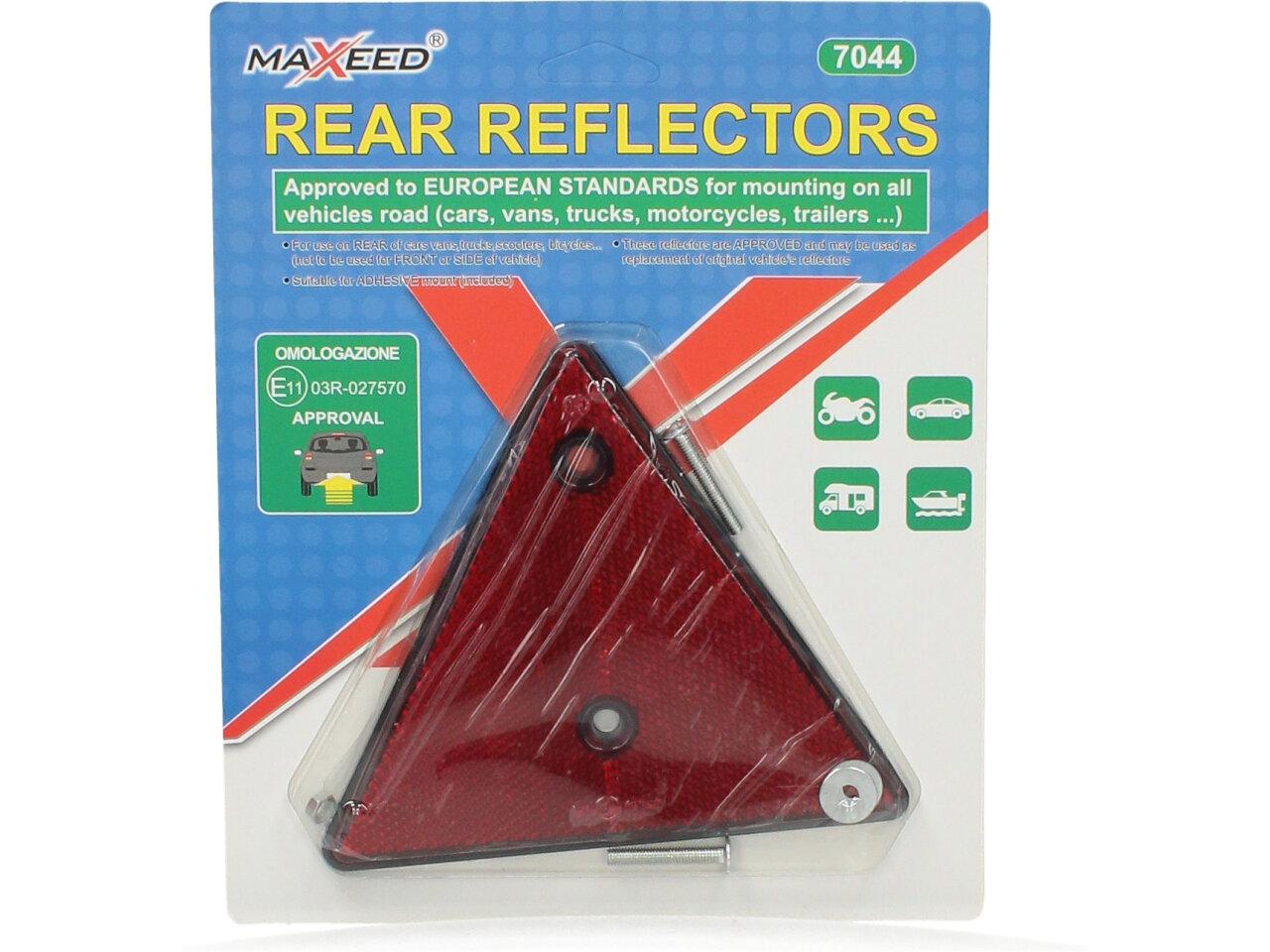Červená reflexní odrazka trojúhleník jsou vhodné na zadní stranu auta, autobusu, kamionu, lodí, traktorů ale i kočárků. Díky tomu, že je z odolného plastu a součástí balení jsou šroubky, lze snadno namontovat kam potřebujete a při mlze, nebo večer Vás nikdo nepřehlédne.