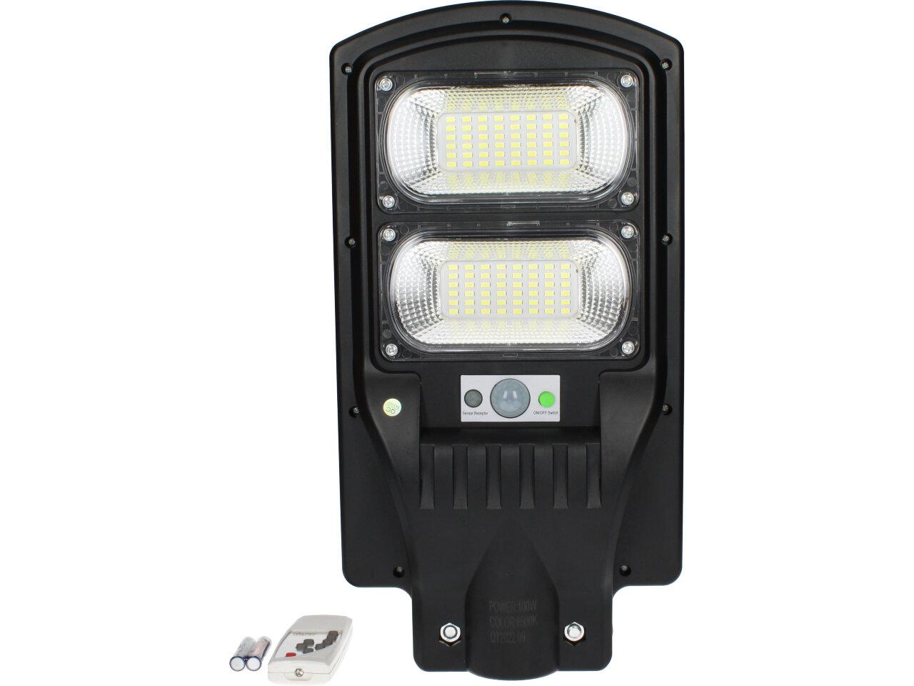 Solární pouliční lampa se senzorem pohybu je vhodná pro místa bez přístupu k elektřině. Ideální pro osvětlení zahrad, vjezdů garáží, altánů, ulic, chodníků. Detekční úhel: 120°. Lampa se po setmění nebo detekci pohybu automaticky zapne. Maximální výdrž baterie je 8 - 10 hodin. Lze ovládat pomocí dálkového ovladače ve vzdálenosti až 5m od reflektoru. Maximální detekční vzdálenost: 8 m. Baterie do dálkového ovládání: 2 x AAA (jsou součástí).