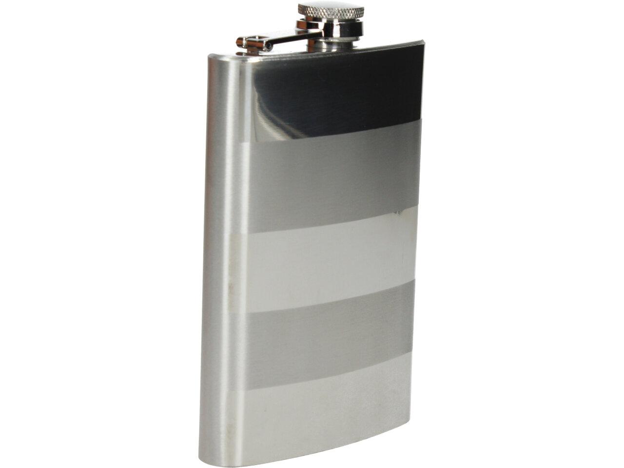 Placatka nerez s pruhy 260ml (9oz) na alkohol nebo jiný nápoj. Ideální do náprsní kapsy Rozměry 13x9 cm s uzavíratelným víčkem o objemu 2,66 ml